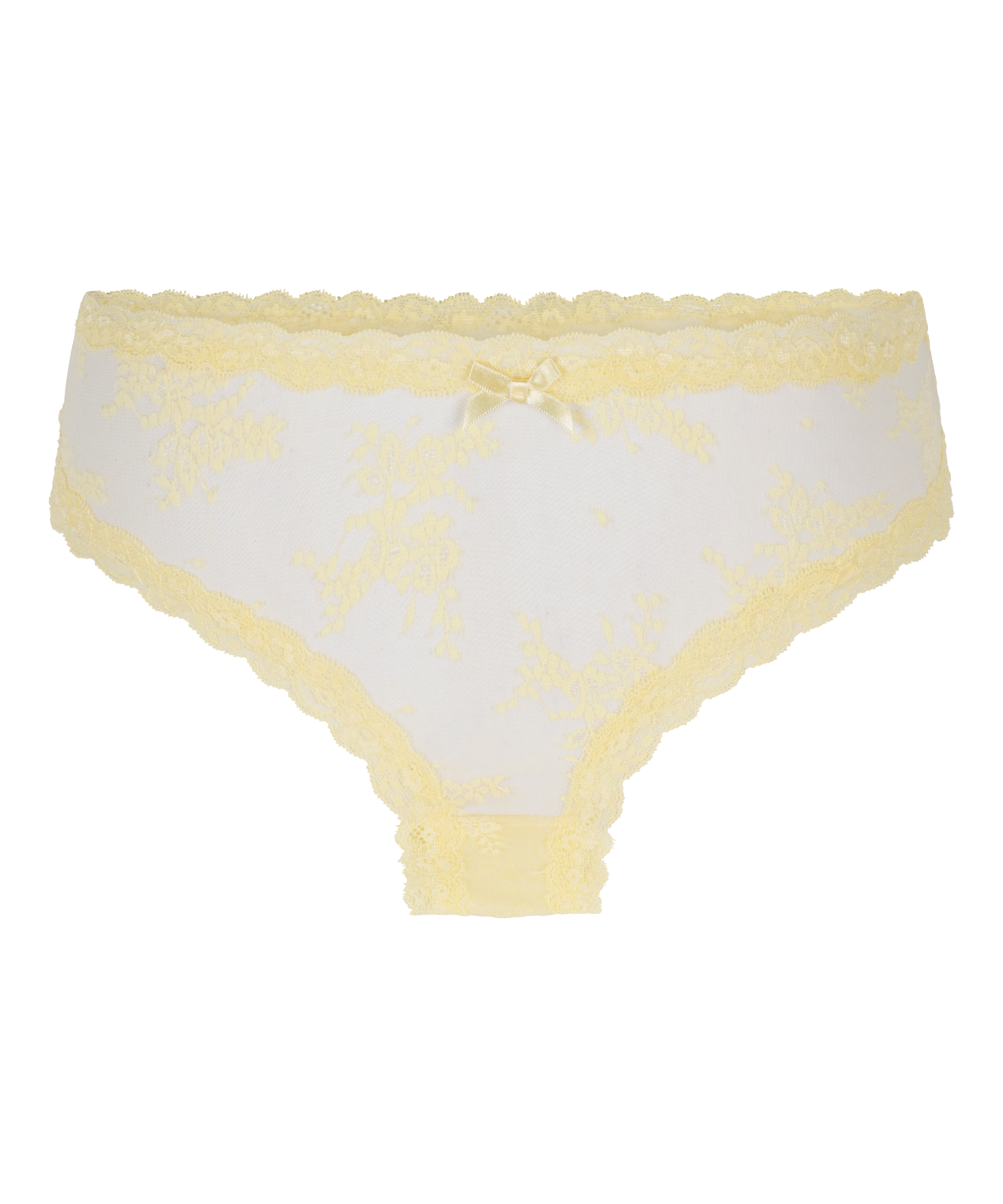 Denne veldig feminine brasilianske trusen er pyntet med en blonderand.