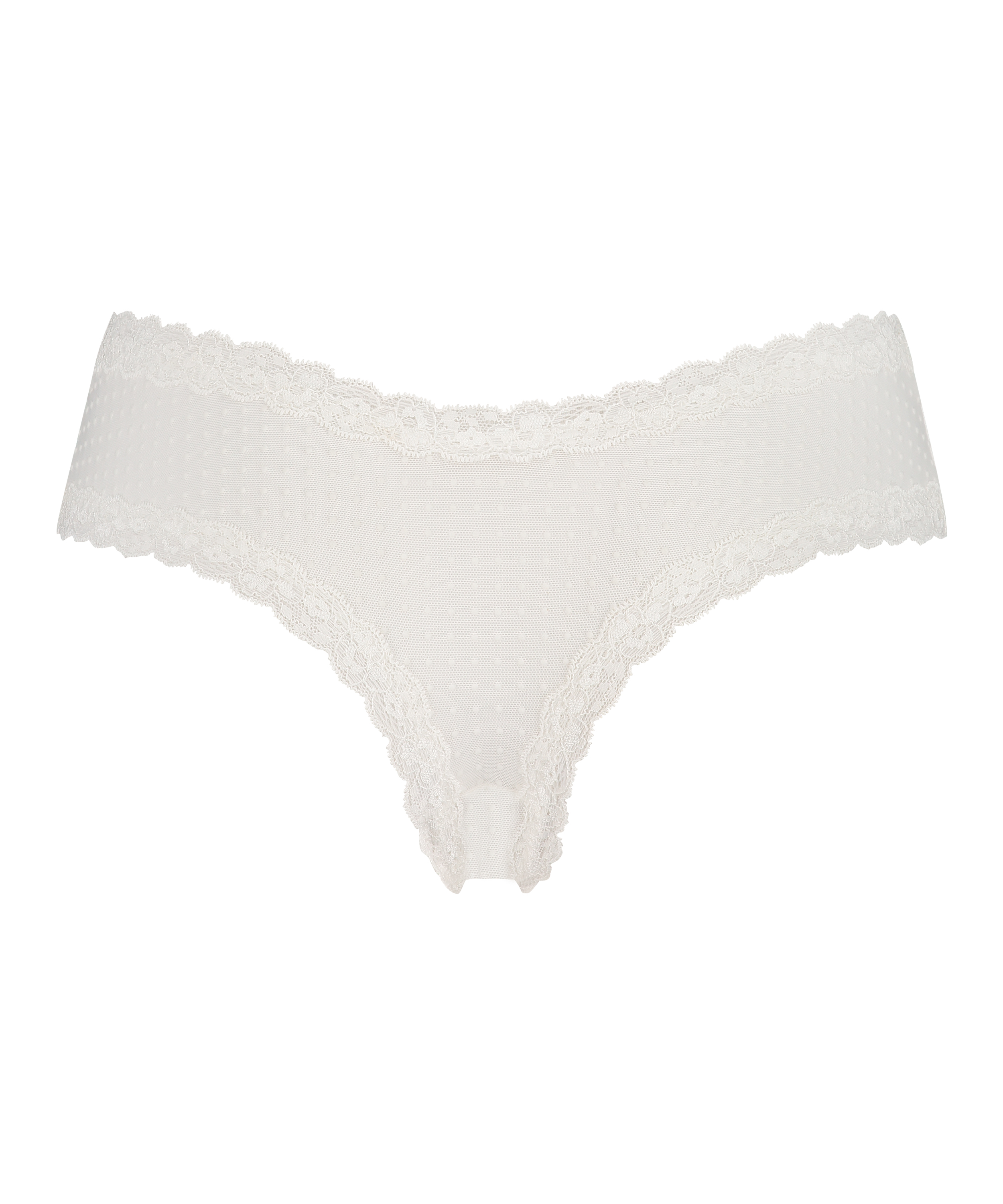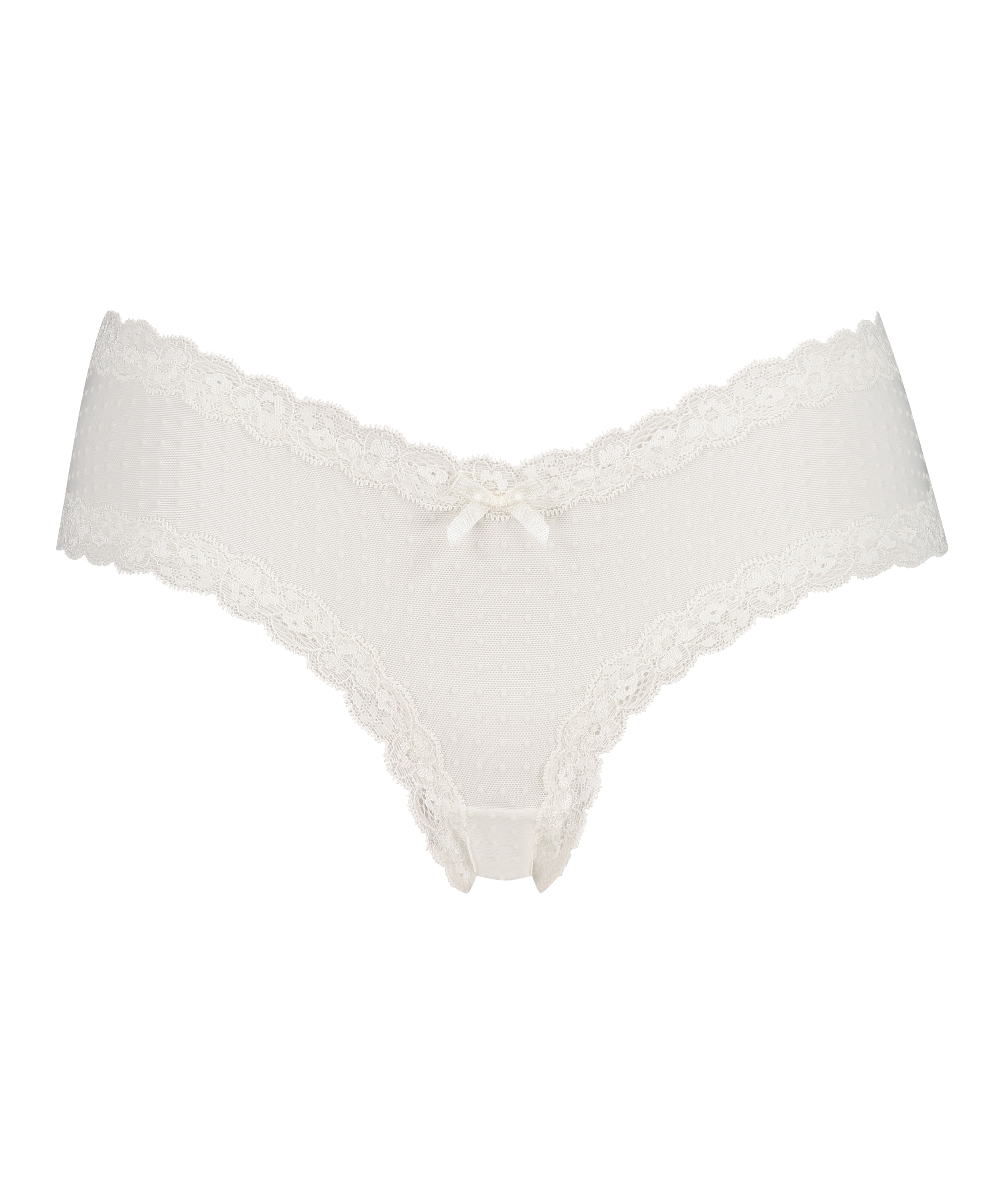 Denne veldig feminine brasilianske trusen er pyntet med en blonderand.