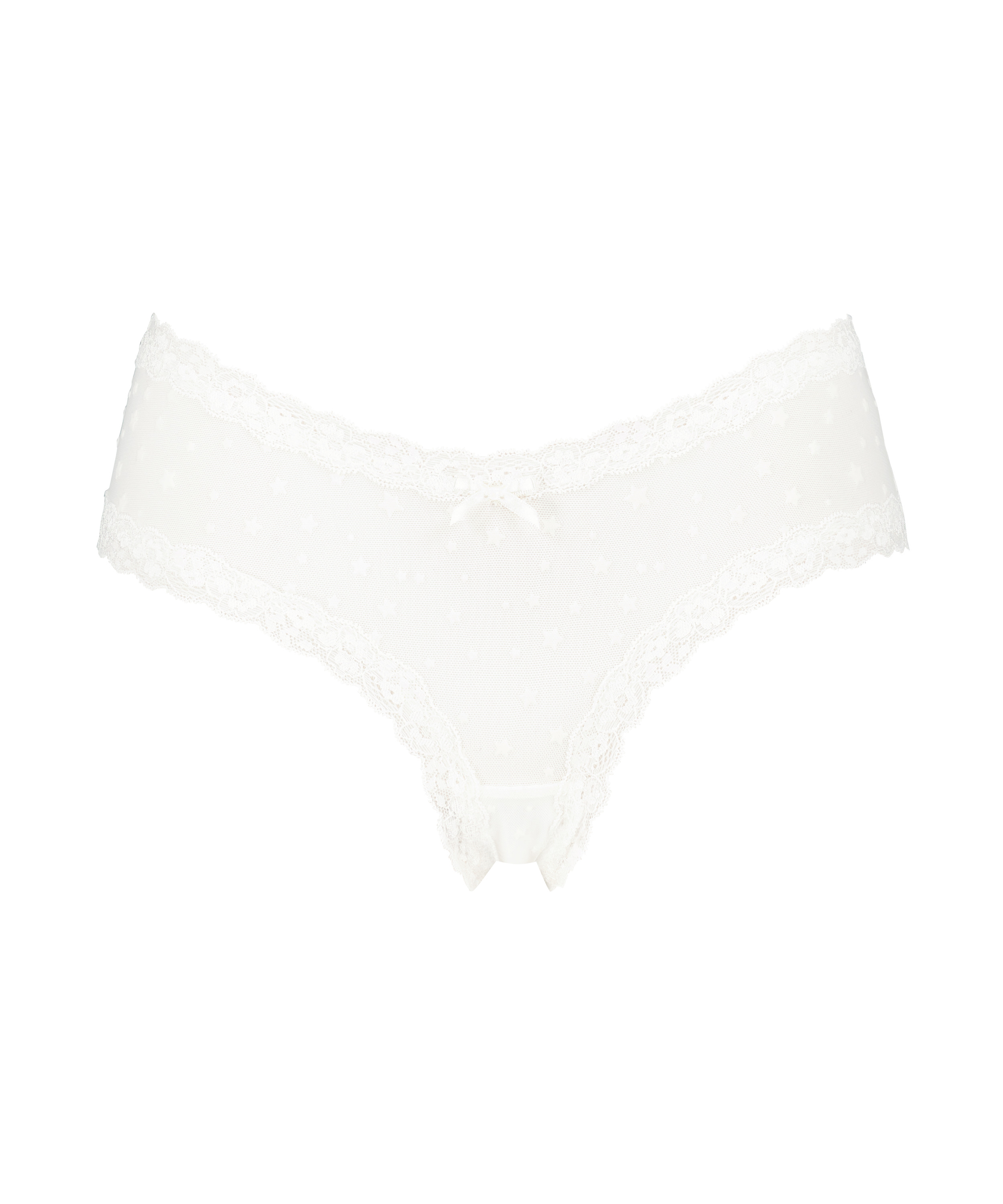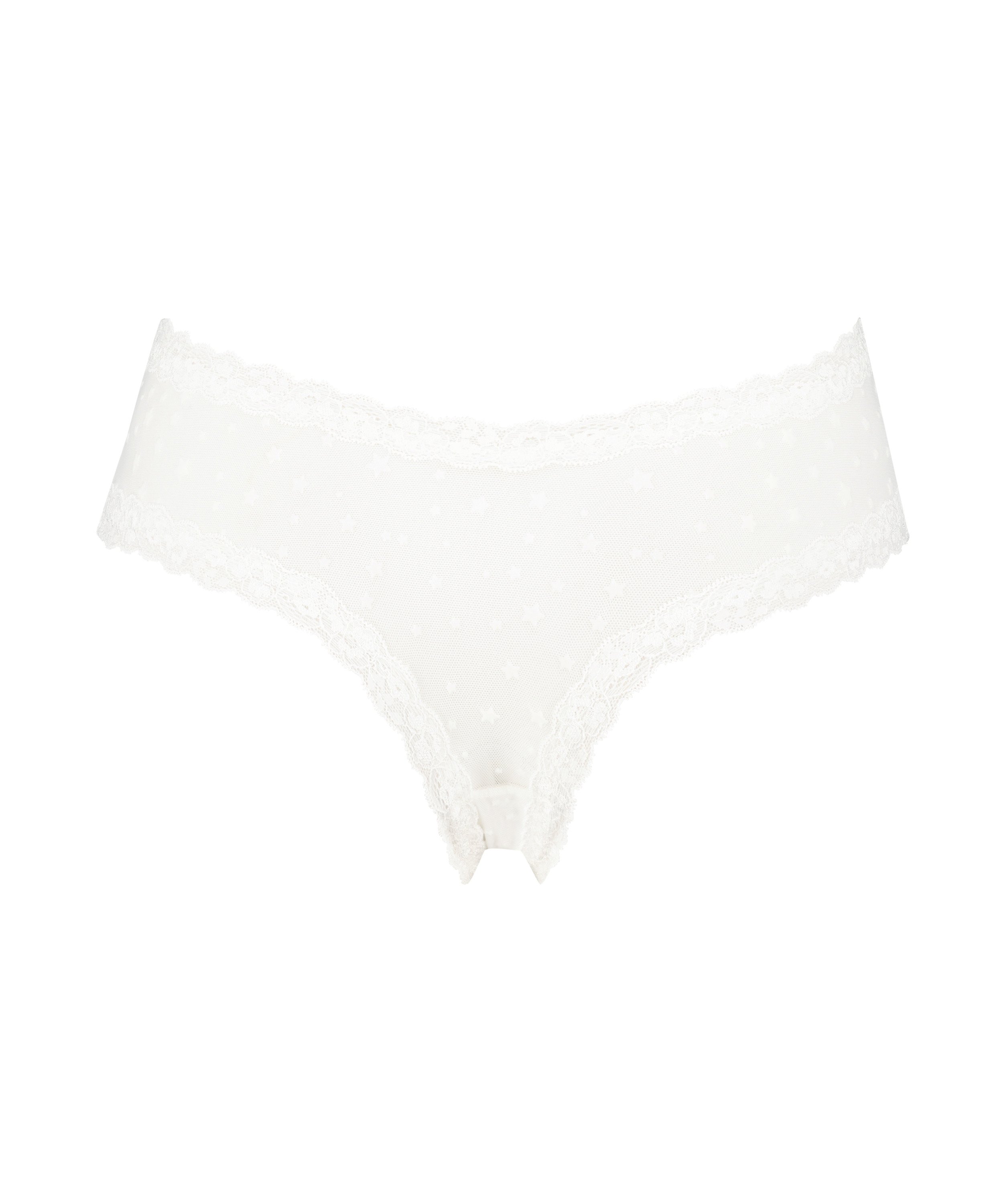 Denne veldig feminine brasilianske trusen er pyntet med en blonderand.