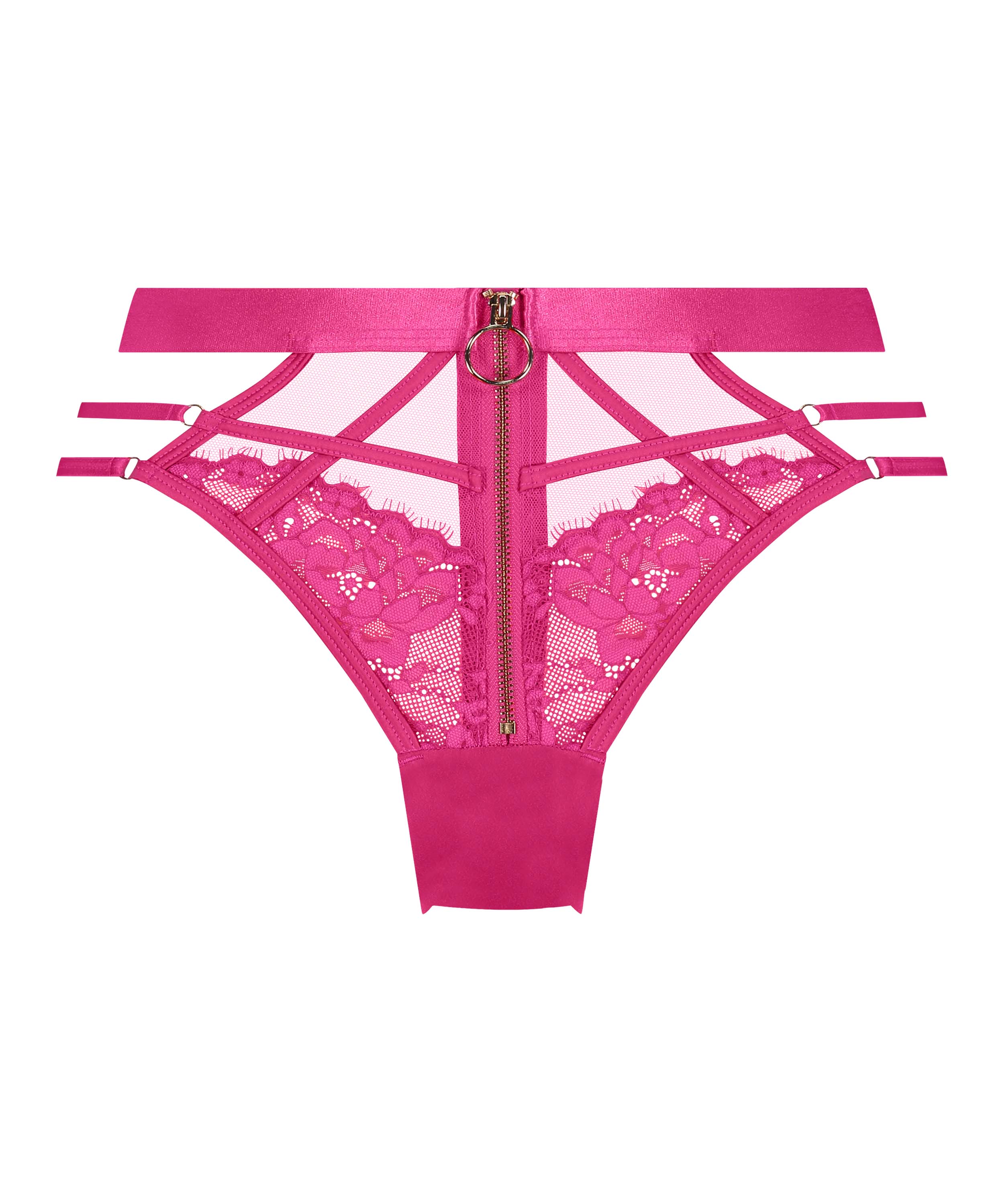 Gjør settet ditt komplett med denne sexy brasilianske trusen som har glidelås og blonder som gir en veldig sexy effekt. Fra vår Private-kolleksjon.