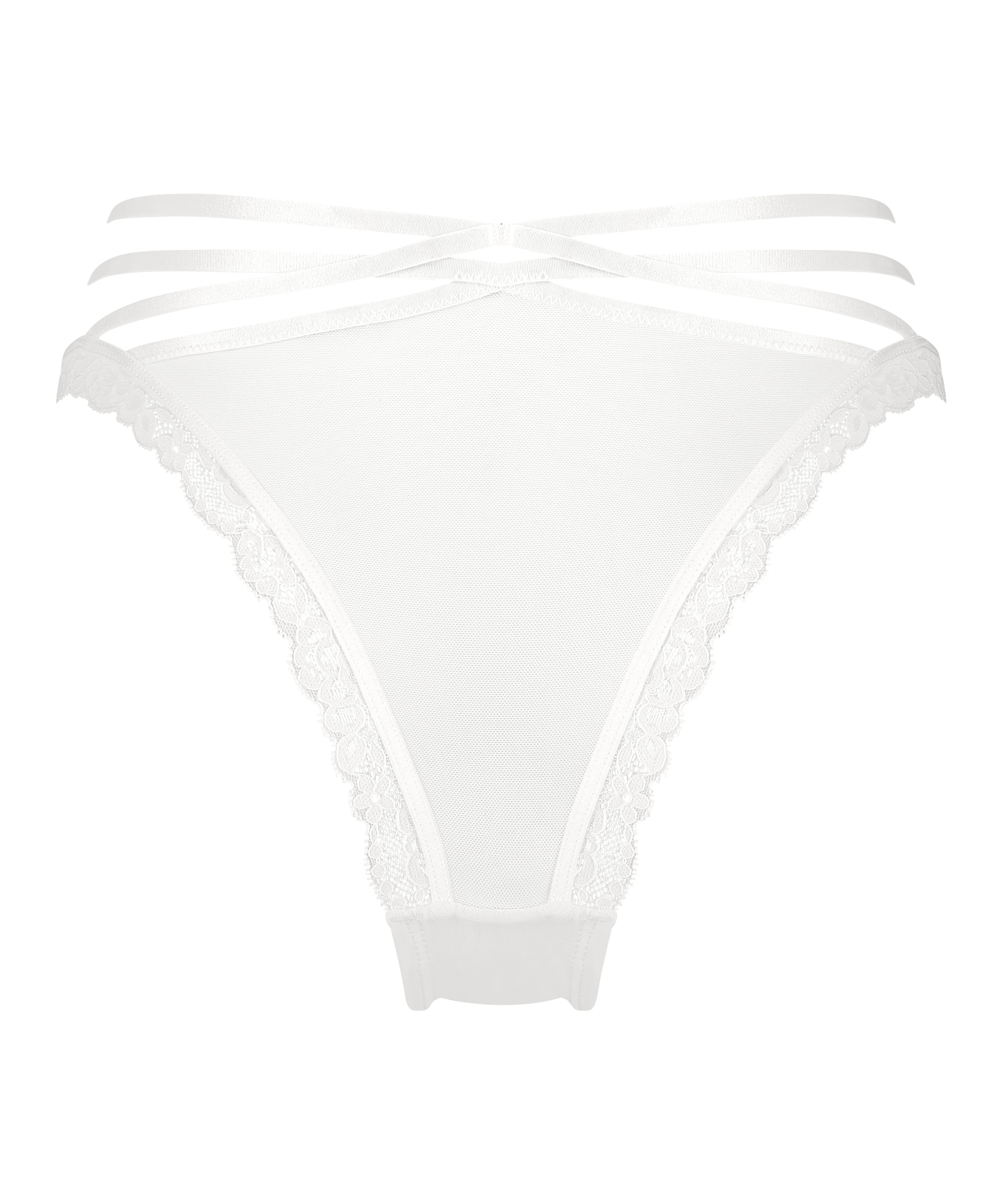 Vi presenterer vår fengslende Janine Brazilian! Med sitt delikate blondedesign foran og netting bak, prydet med intrikate stroppedetaljer rundt midjen, har dette plagget den perfekte balansen mellom eleganse og forførelse. Du kan enkelt kombinere den med din favoritt-BH for å fullføre undertøysantrekket ditt!