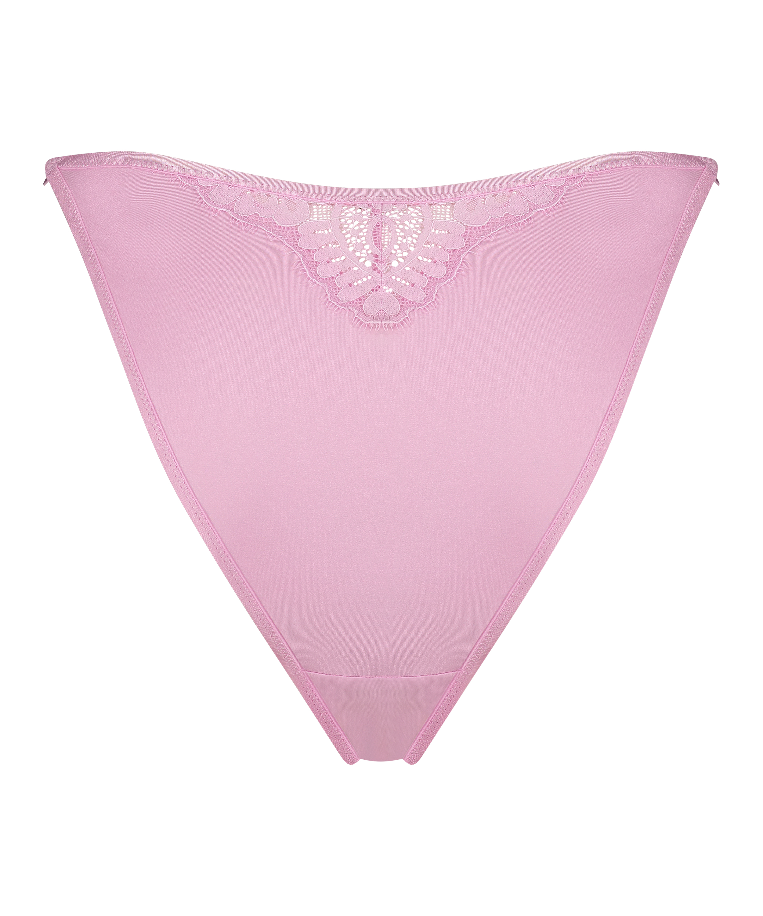 Skjem deg bort i sensualitet med vår fantastiske G-streng! Dette plagget er prydet med blonder foran og en forlokkende blondeutskjæring bak, og lover å gi deg selvtillit. Stroppedetaljene på sidene bidrar ikke bare til å gjøre dem ekstra forlokkende, men forlenger også bena for en flatterende silhuett. Kombiner den med favoritt-BH-en din for en komplett look!