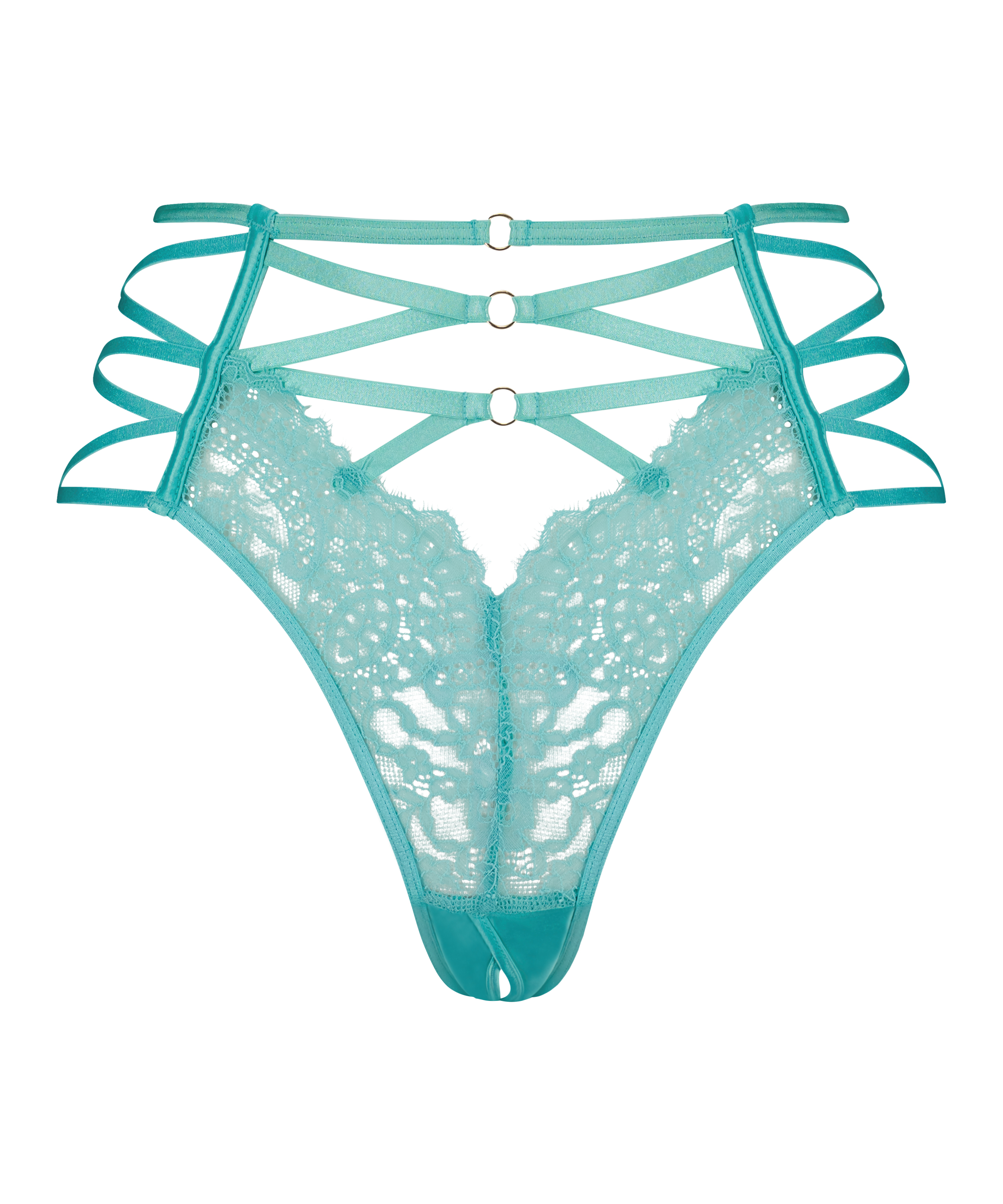Piff opp stemningen med denne unike brazilian med åpent skritt. Den er fullstendig dekket med blonder både foran og bak, og har mange stropper og utskjæringer som gjør den supersexy. Det åpne skrittet setter et ekstra krydret preg på stemningen. Gjørs dette settet komplett med en matchende BH!