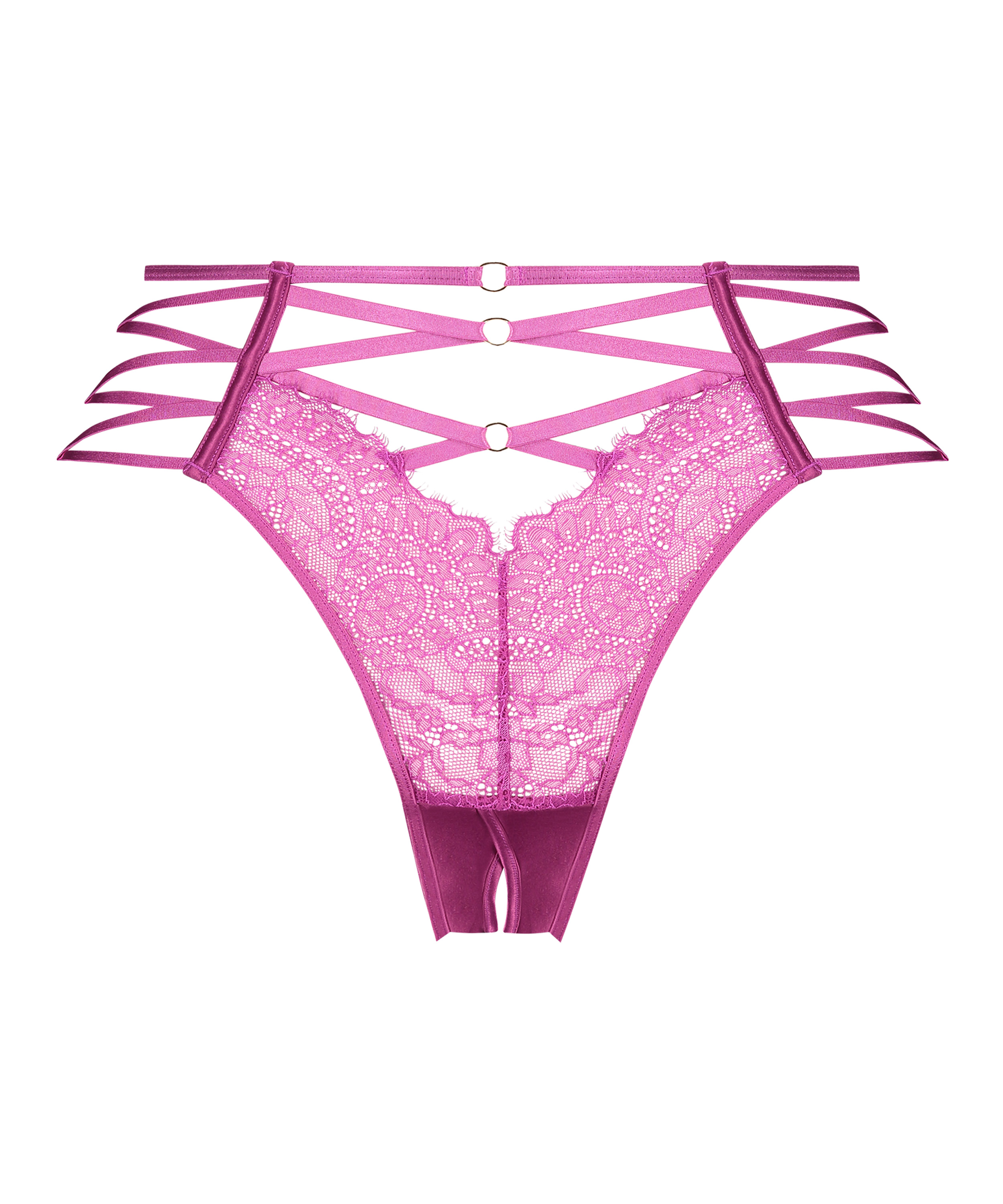 Piff opp stemningen med denne unike brazilian med åpent skritt. Den er fullstendig dekket med blonder både foran og bak, og har mange stropper og utskjæringer som gjør den supersexy. Det åpne skrittet setter et ekstra krydret preg på stemningen. Gjørs dette settet komplett med en matchende BH!