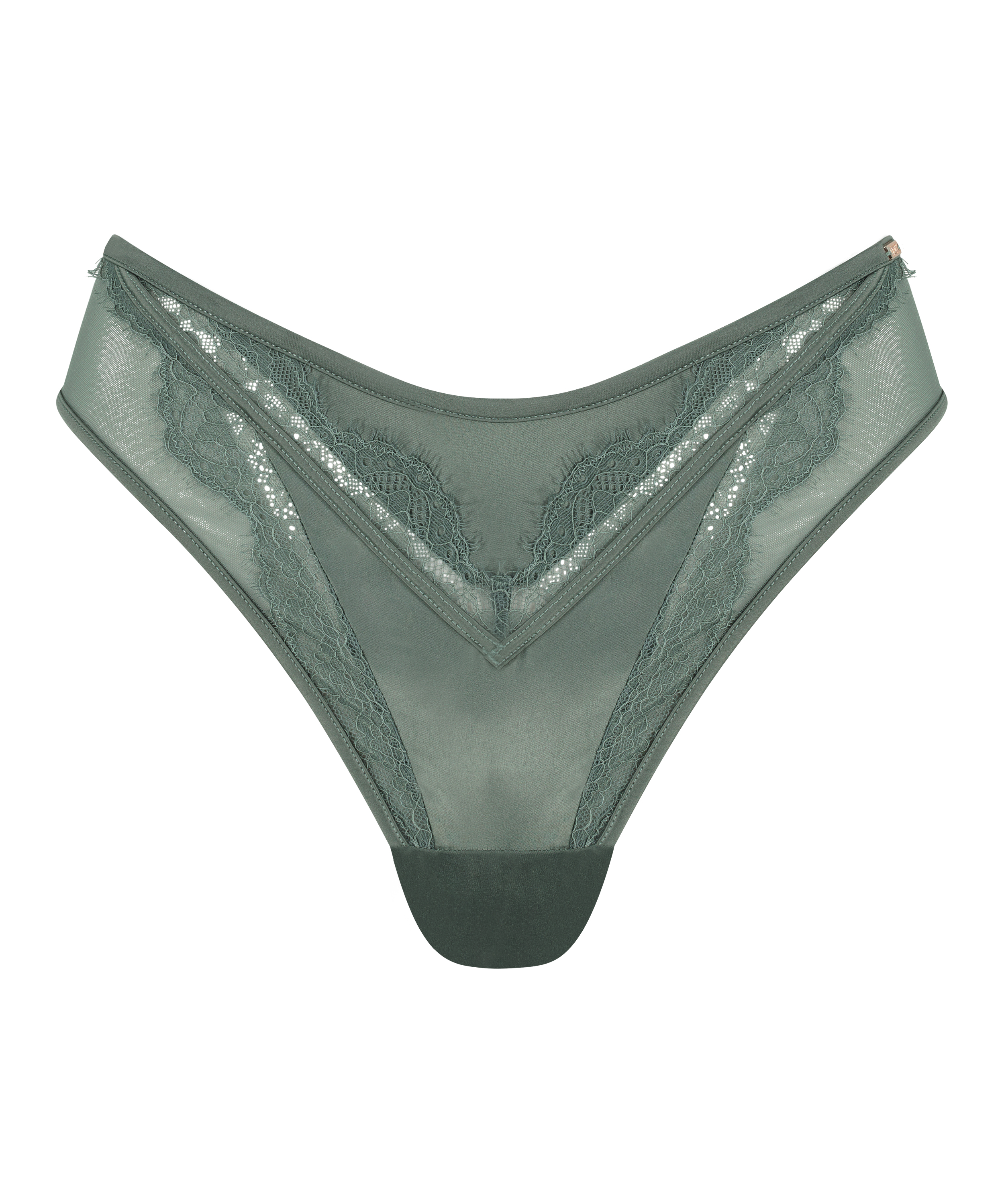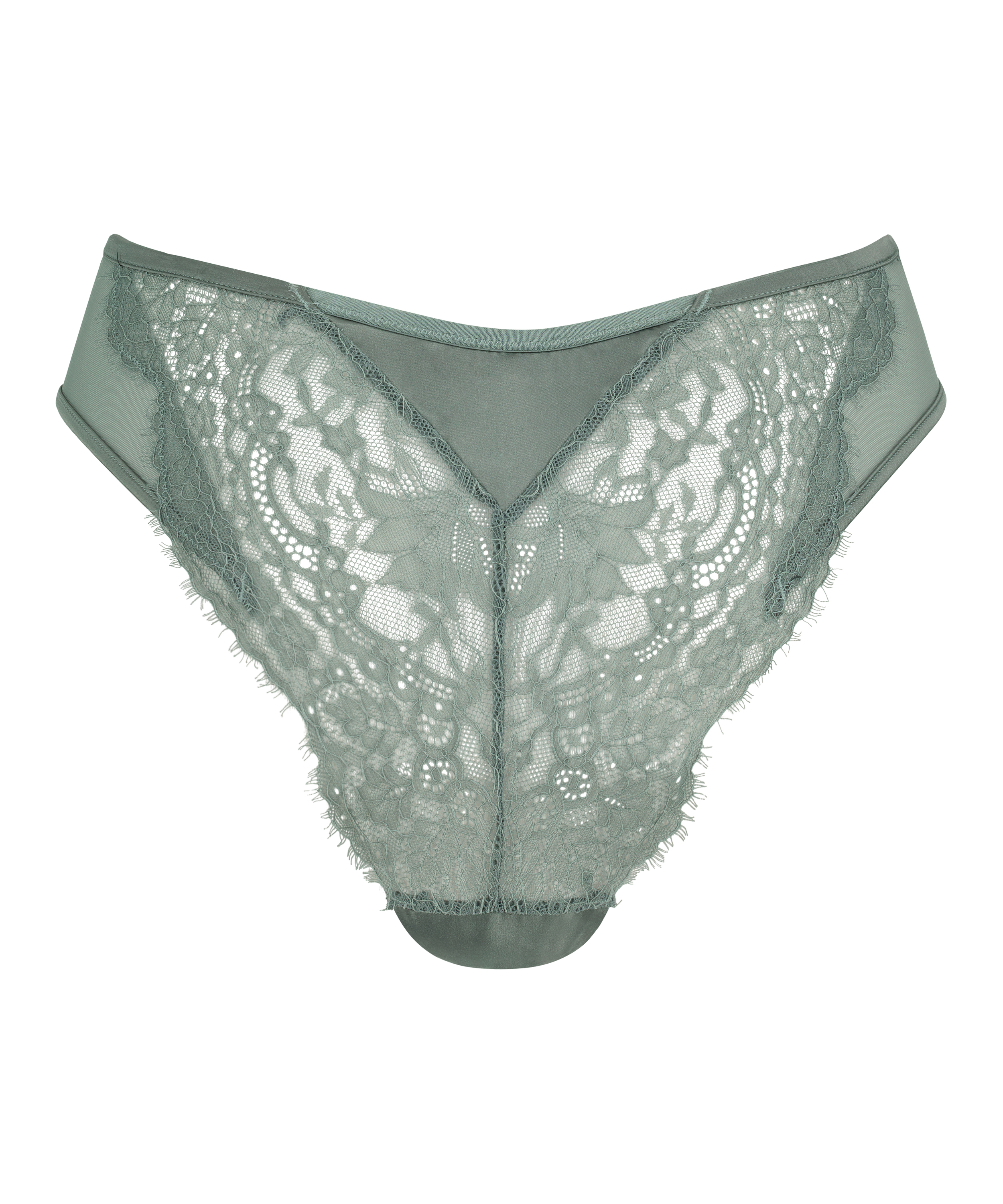 Denne superelegante brazilian-trusen viser frem masse romantiske blonder og satengdetaljer. Fullfør settet med en matchende BH! En del av vår Noir-kolleksjon.