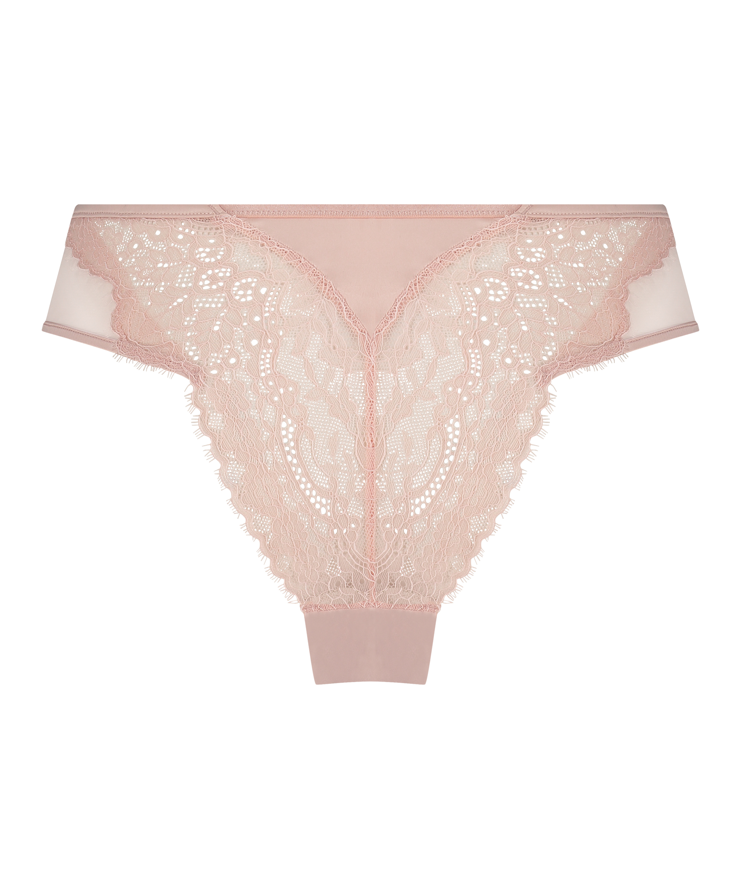 Denne superelegante brazilian-trusen viser frem masse romantiske blonder og satengdetaljer. Fullfør settet med en matchende BH! En del av vår Noir-kolleksjon.