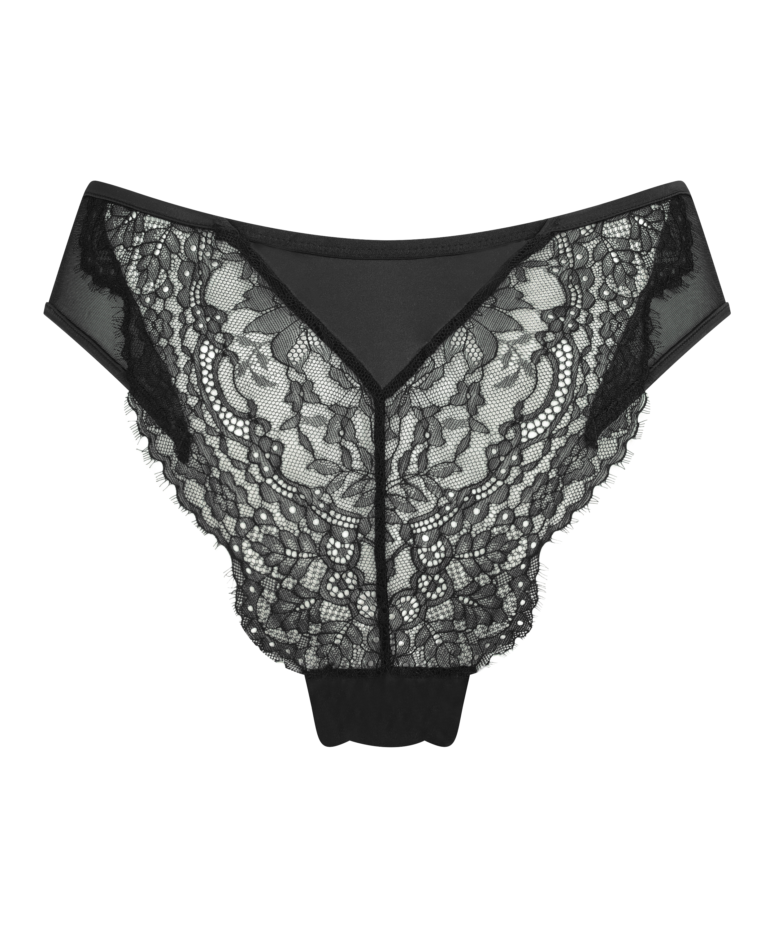 Denne superelegante brazilian-trusen viser frem masse romantiske blonder og satengdetaljer. Fullfør settet med en matchende BH! En del av vår Noir-kolleksjon.