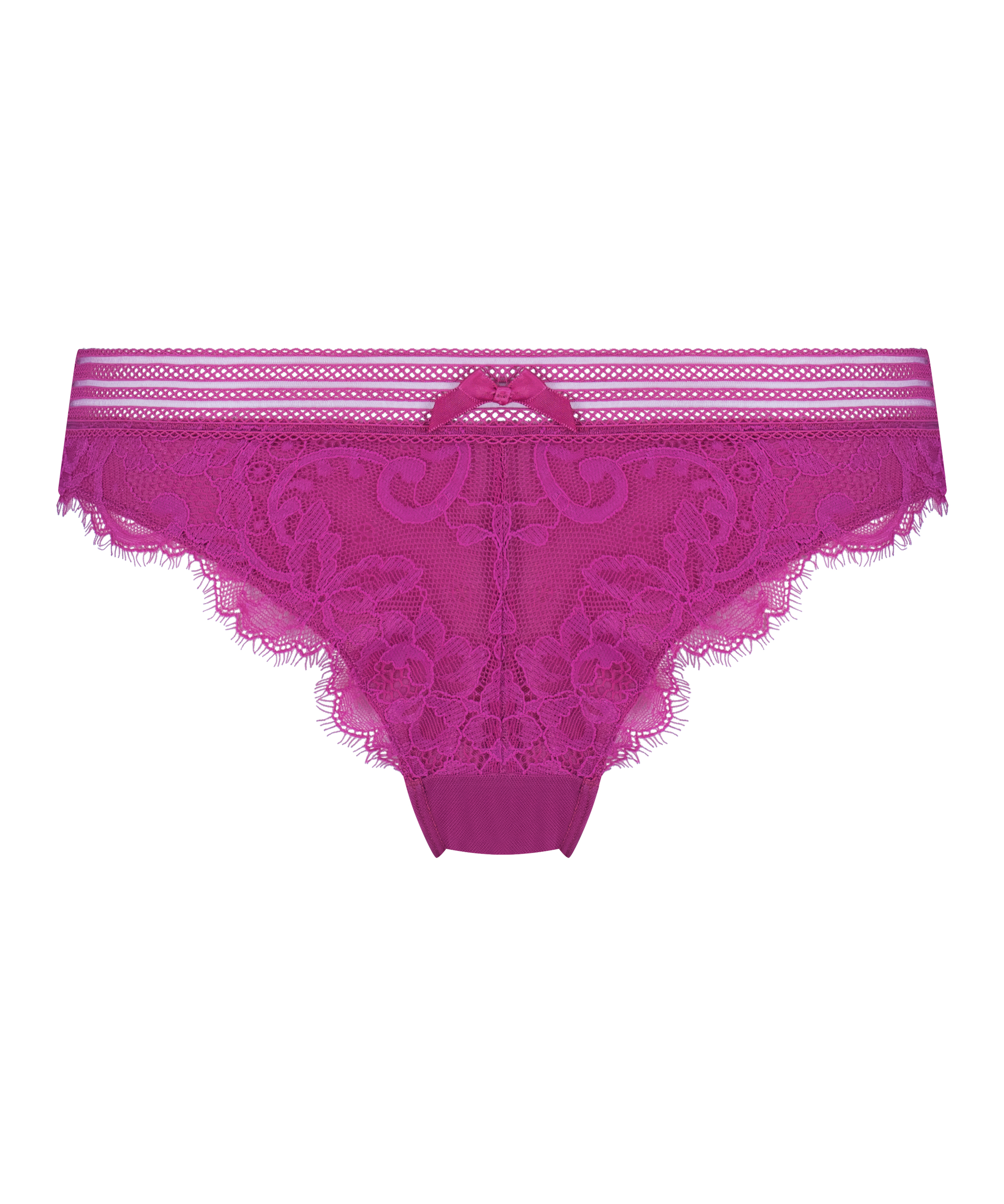 Kompletter settet med denne brazilian-trusen med blonder! Den er laget i blonder og har sløyfe foran. Kombiner med den matchende BH-en for et komplett sett.