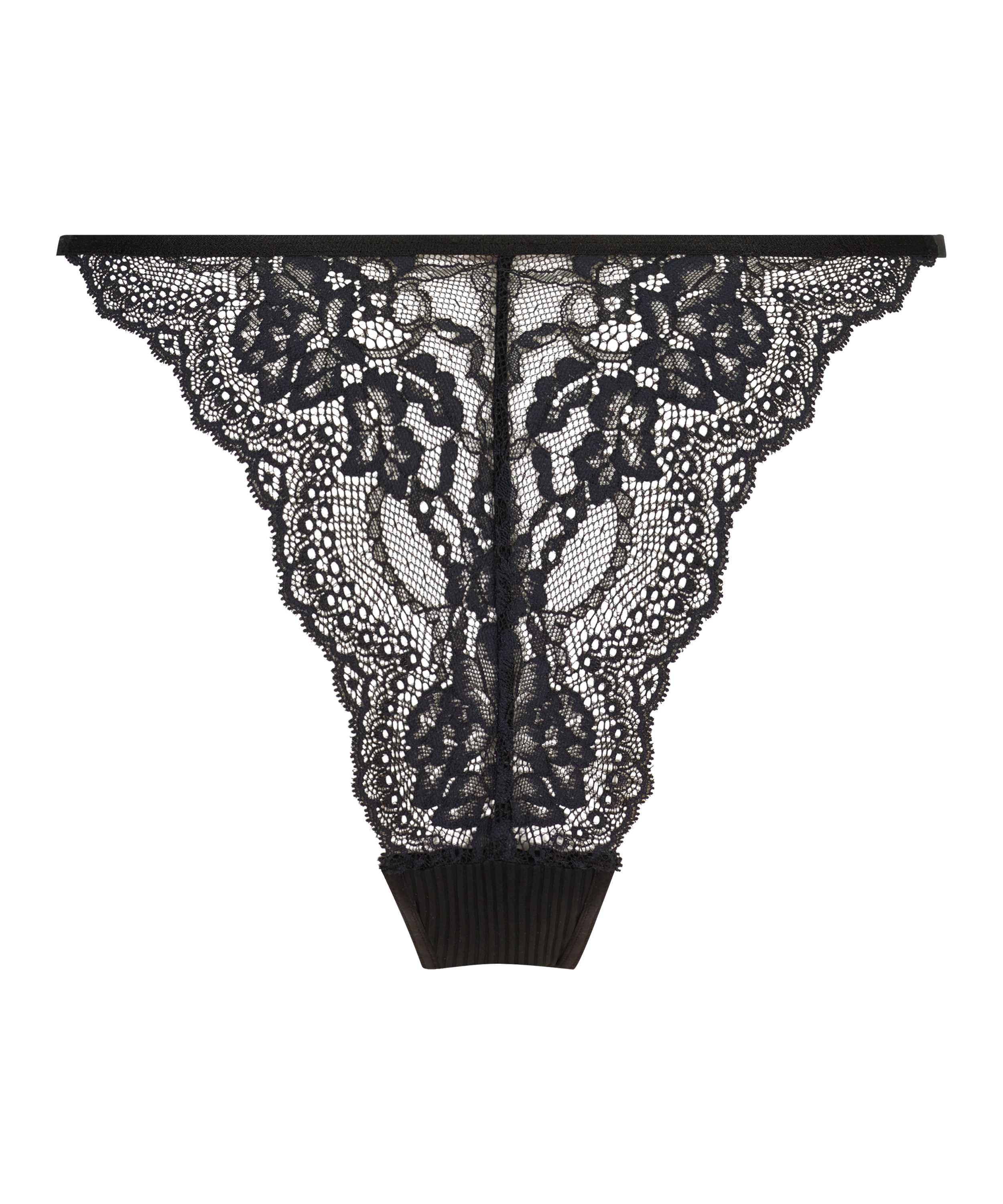 Hvis du er på jakt etter behagelige og lette truser, er disse perfekte for deg. Baksiden har masse veldig romantiske og elegante blonder, mens fronten har et halvt gjennomskinnelig ribbestrikket look. Kombiner med favoritt-BH-en din!