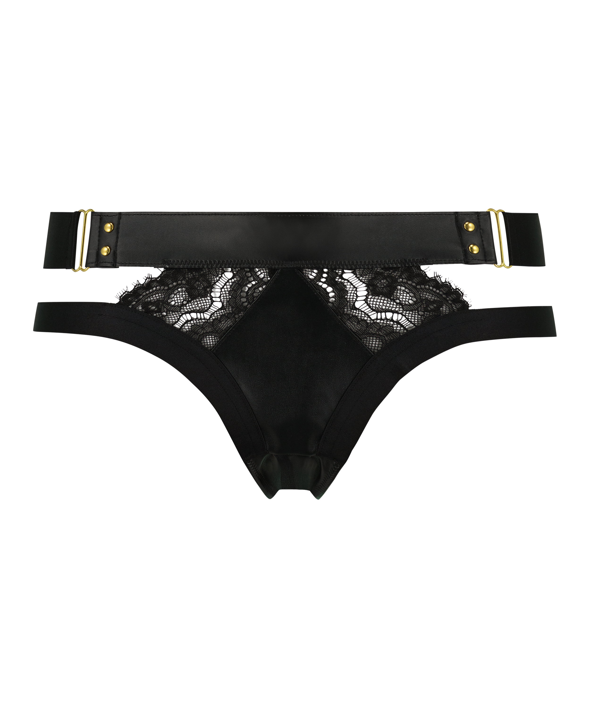 Klar for en kveld full av spenning? Da er denne brazilian-trusen perfekt! Den ser ut som skinn og er delvis dekket med blonder. I tillegg har den en bred kant for en komfortabel passform og stroppedetaljer på hoftene. Kombiner den med den matchende BH-en fra Private-kolleksjonen vår!