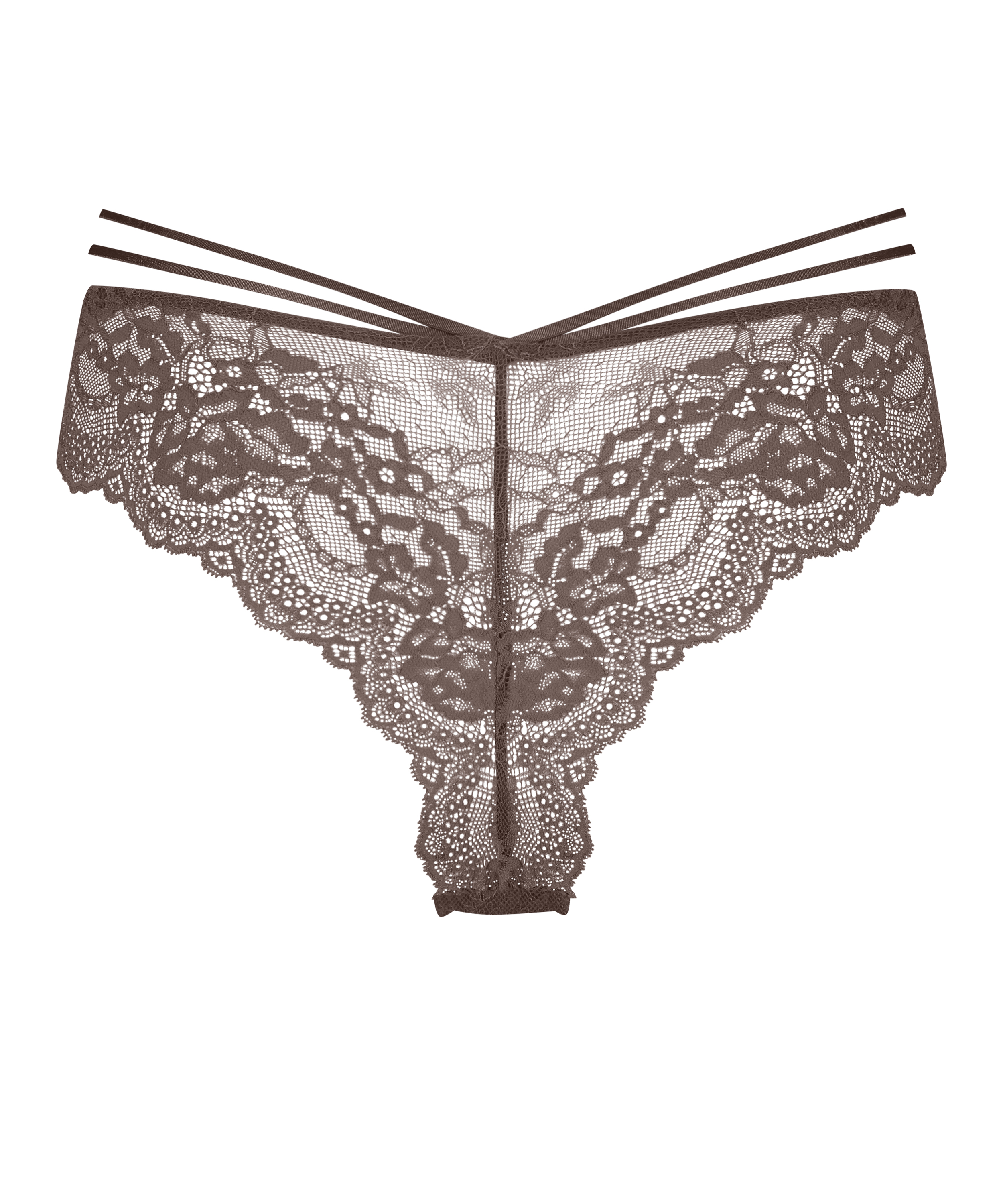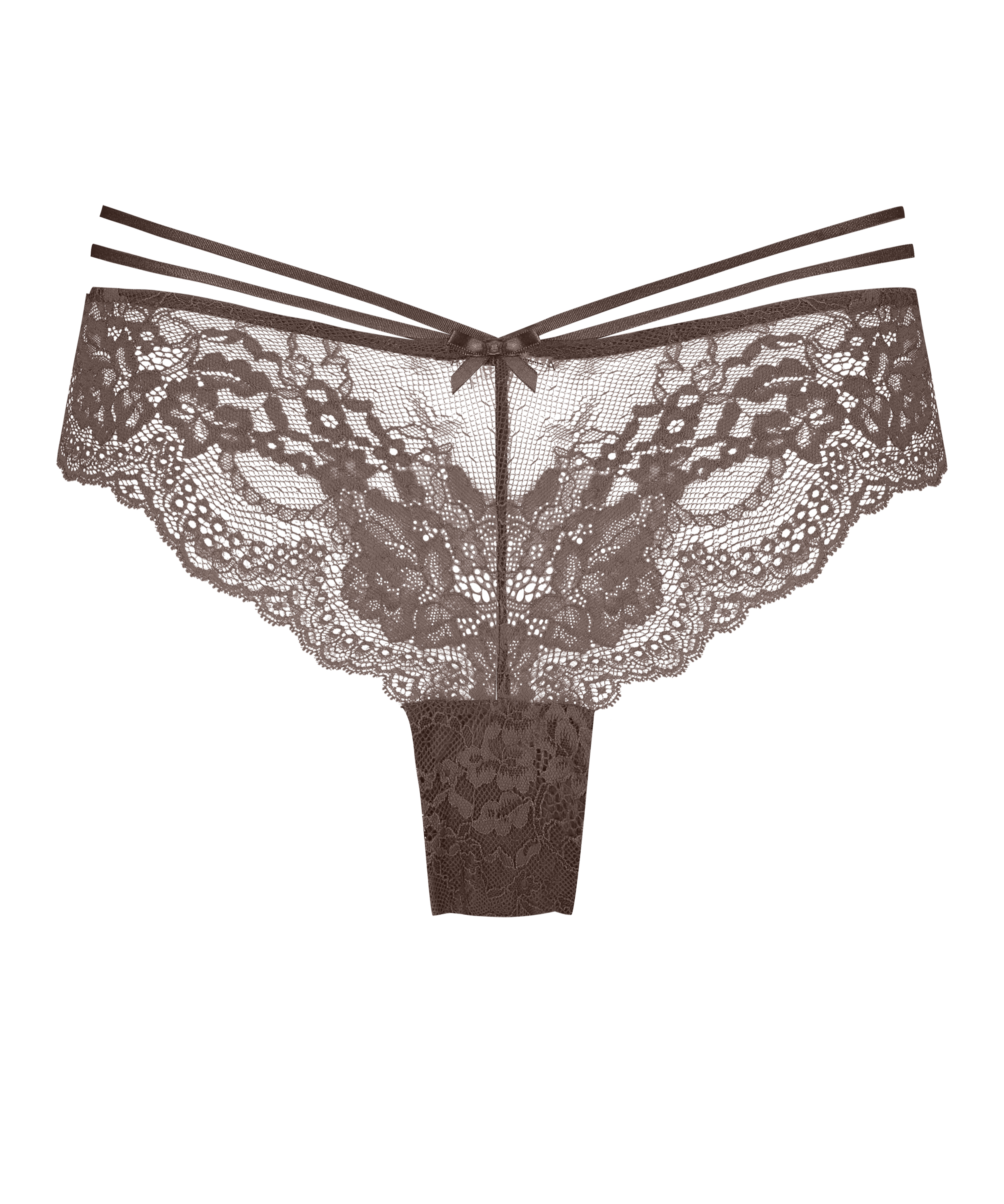 Forelsk deg i denne brazilian-trusen! Med masse romantiske blonder for å gi en semi-transparent look, i tillegg til sexy stroppedetaljer på hoftene. Finn en matchende BH for å komplettere settet!