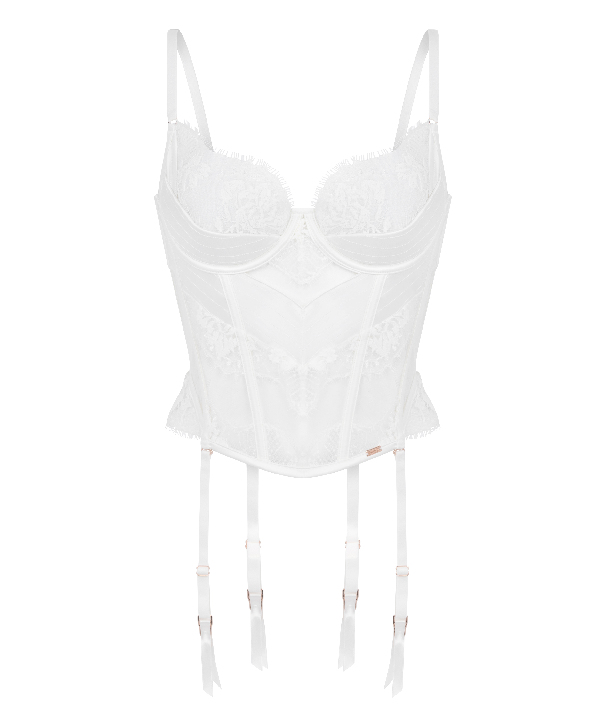 Skru opp lokket med denne fantastiske bustieren i blonder og mesh! Blandingen av blanke og skinnende stoffer skaper en fengslende kontrast, mens den strukturerte designen og den tykkere underkoppen gir form og støtte. Avtakbare seler gjør at du kan tilpasse looken din til enhver anledning!