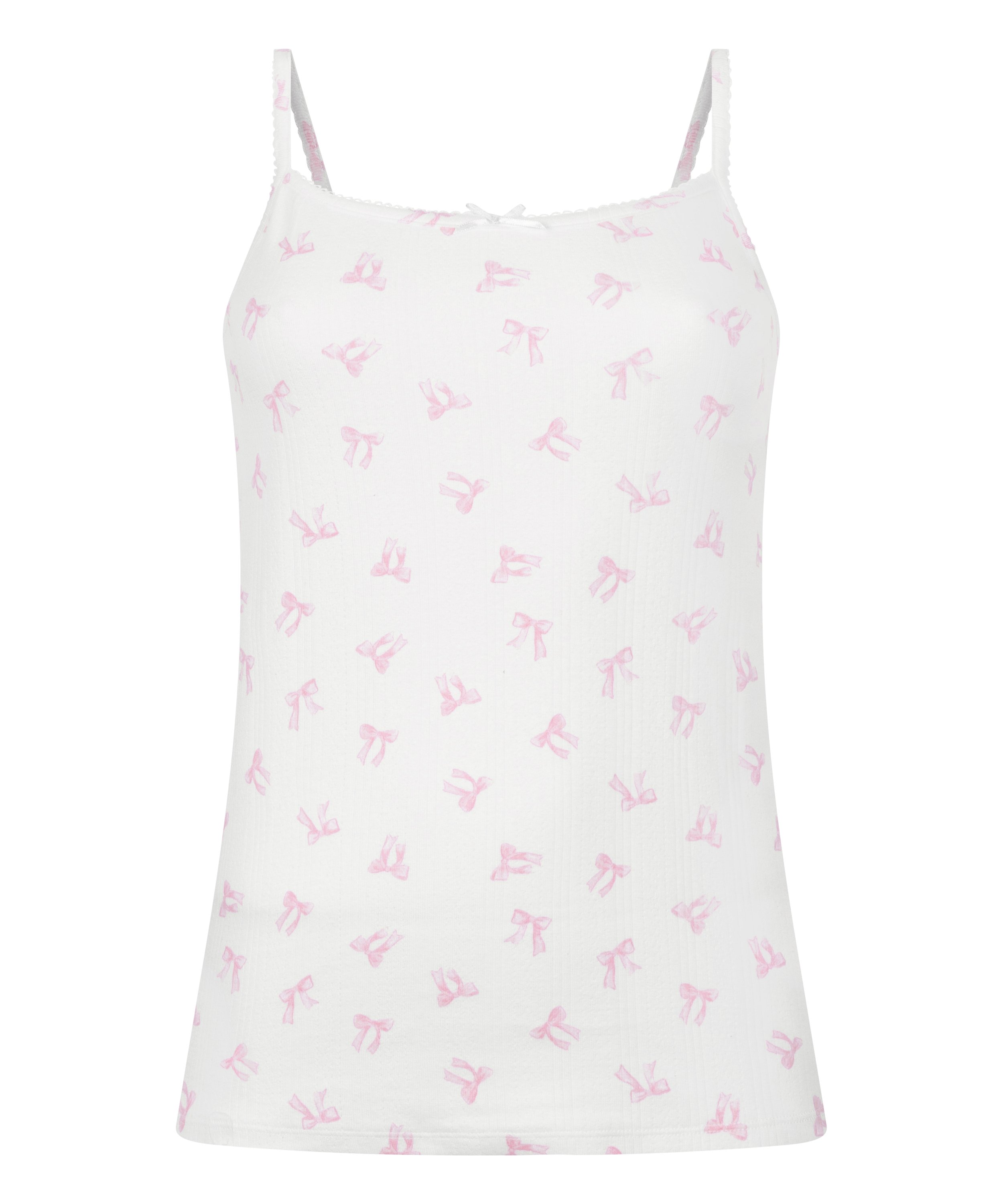 Vår Pointelle-cami er myk, søt og uanstrengt, og er et koselig must-have. Den er laget av pointelle-stoff og har et subtilt strukturmønster, og en sløyfe i midten gir den et feminint preg. Kombiner med den matchende shortsen for å få en gjennomført look.
