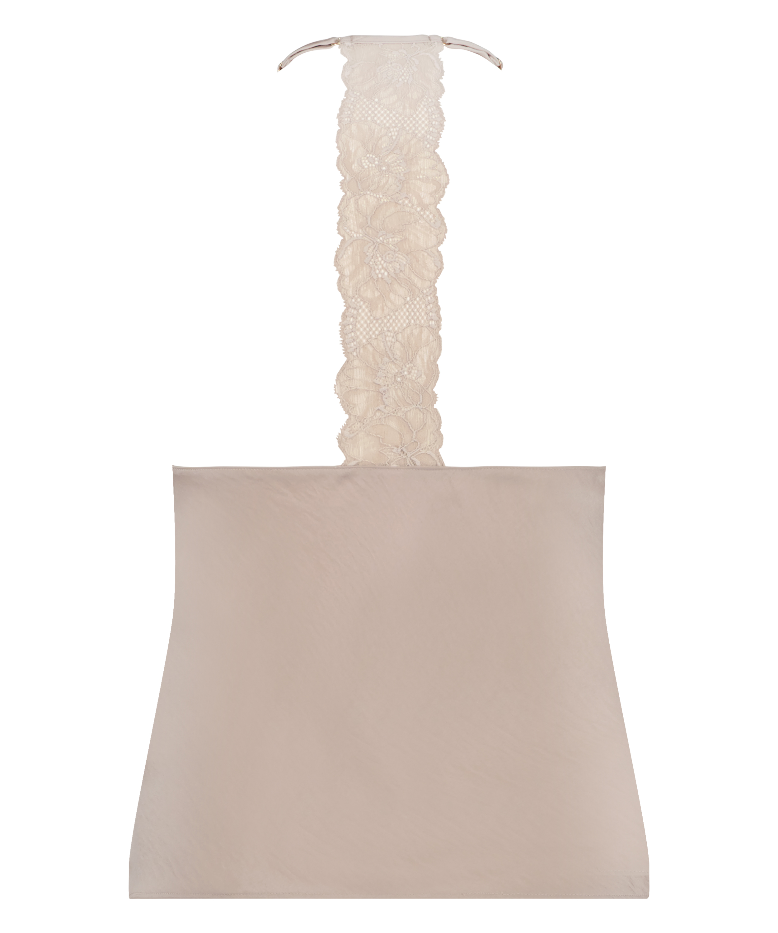 Vi elsker denne glamorøse cami-toppen med blondeutringning som fremhever kløften på en diskre måte. Både klassisk og feminin; du vil glede deg over denne supermyke satengcamien. Kombiner med matchende plagg for et komplett look!