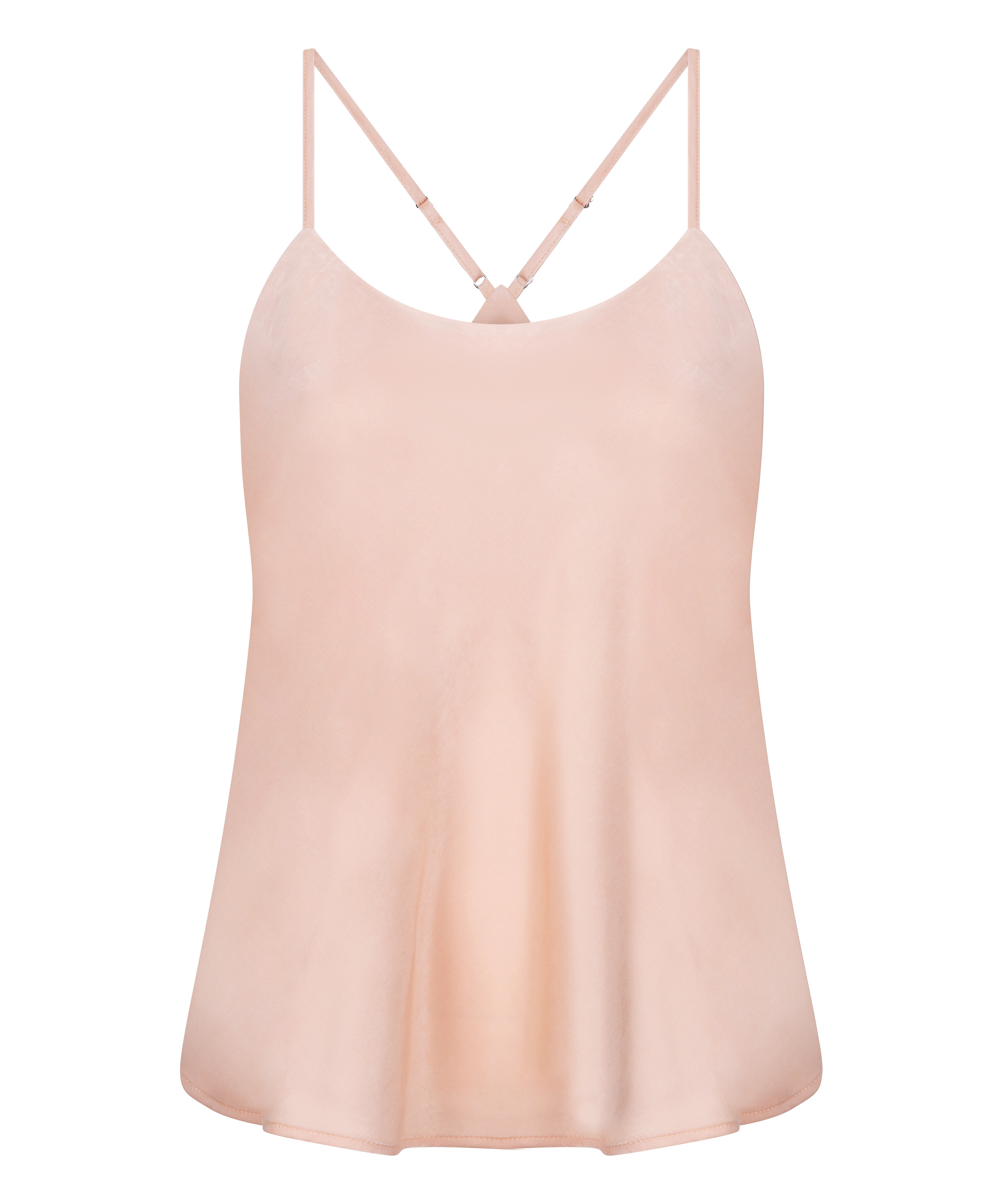 Denne cami-toppen har et nydelig sateng-utseende og følelse. Den har justerbare skulderstropper.