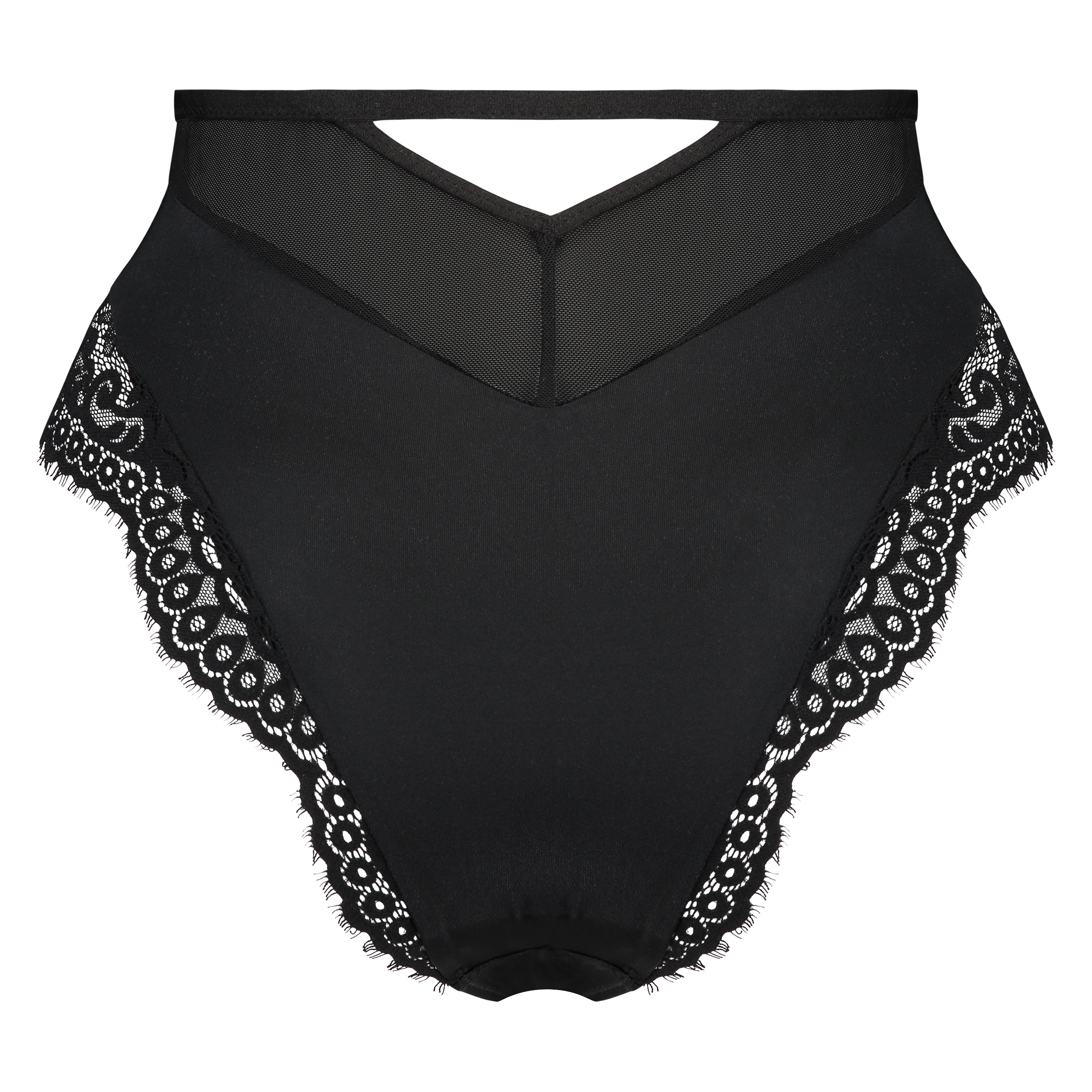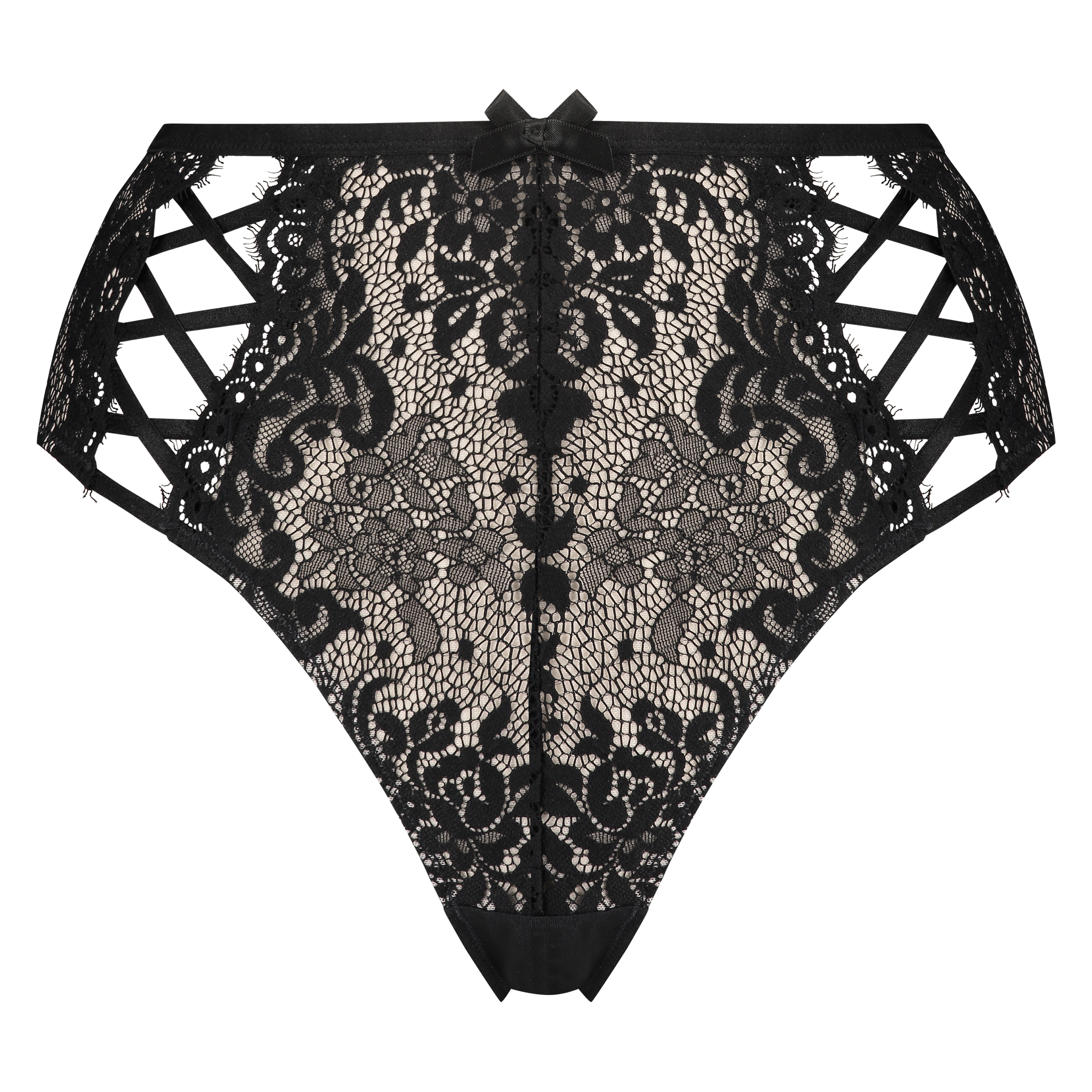 Denne høye brasilianeren vil garantert se fantastisk ut på deg! Forstykket er helt og holdent laget i blonder. Bakstykket er laget av mikrofiberstoff og netting. Det er en sexy snøringsdetalj i siden. Kombiner med den matchende BH-en for et komplett sett.