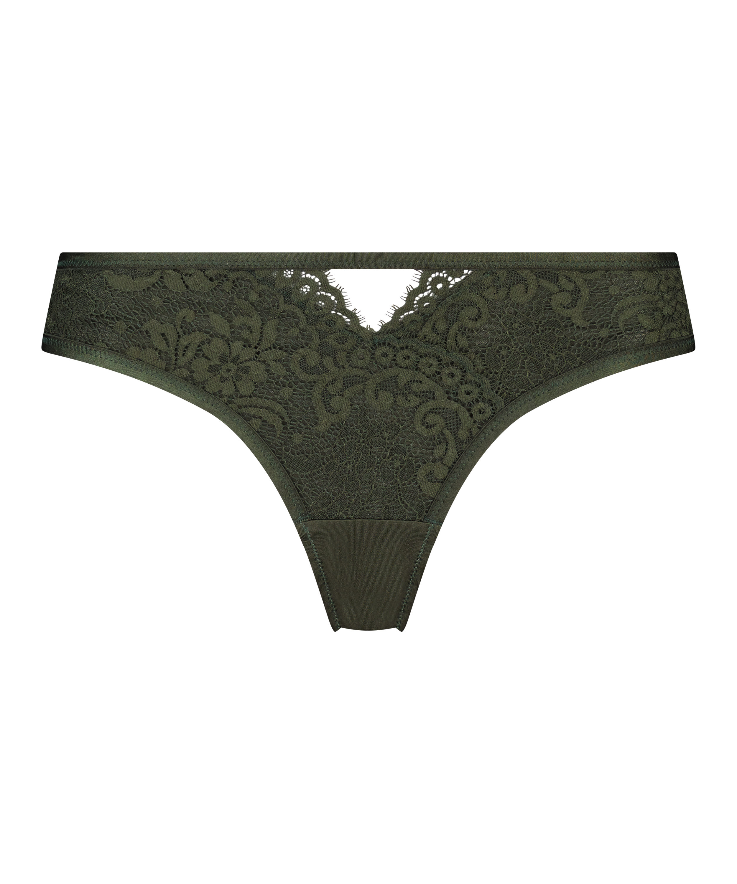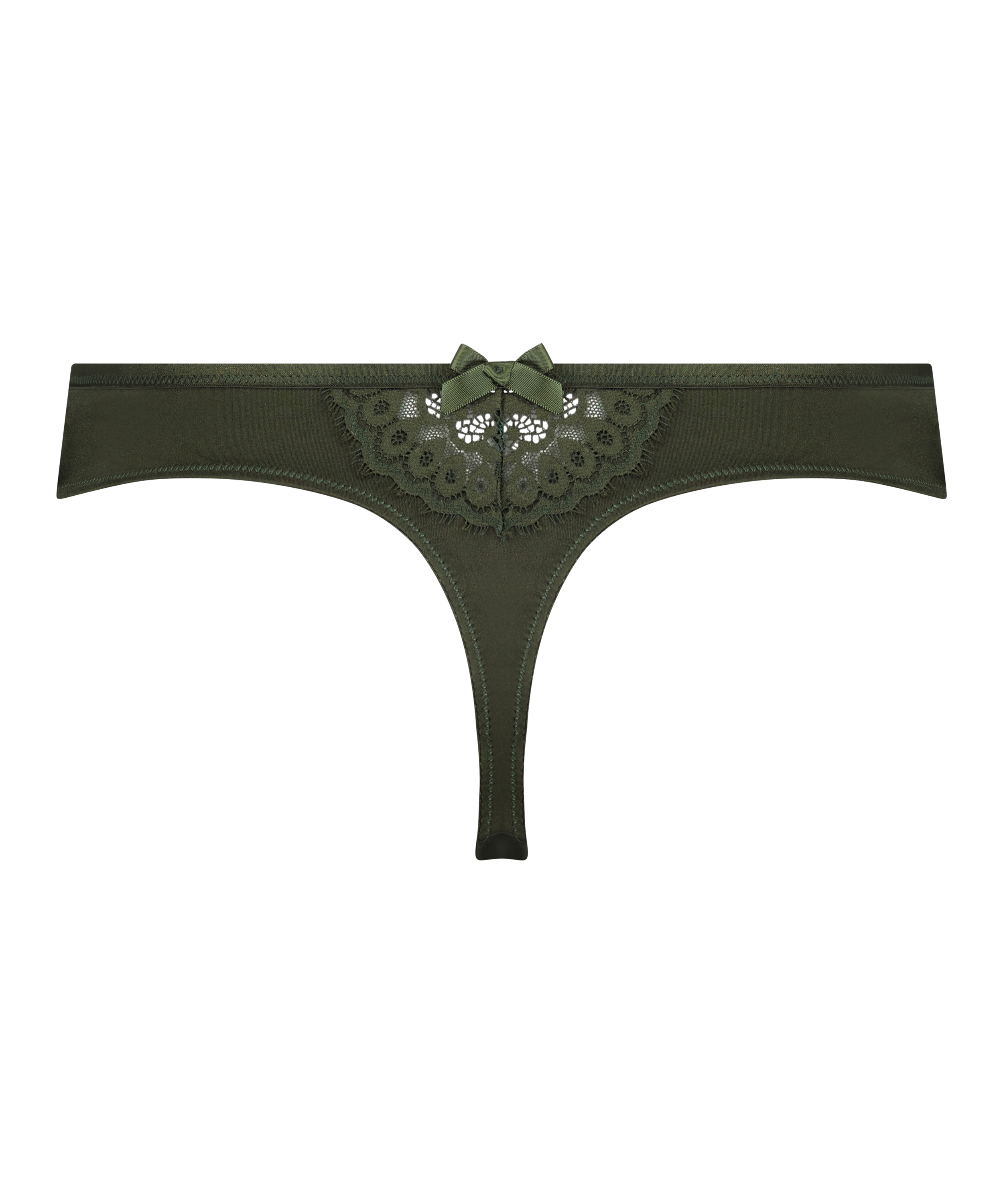 Kompletter settet ditt med denne thongen. Den er laget i blonder og har sløyfe bak. Kombiner med den matchende BH-en for et komplett sett.