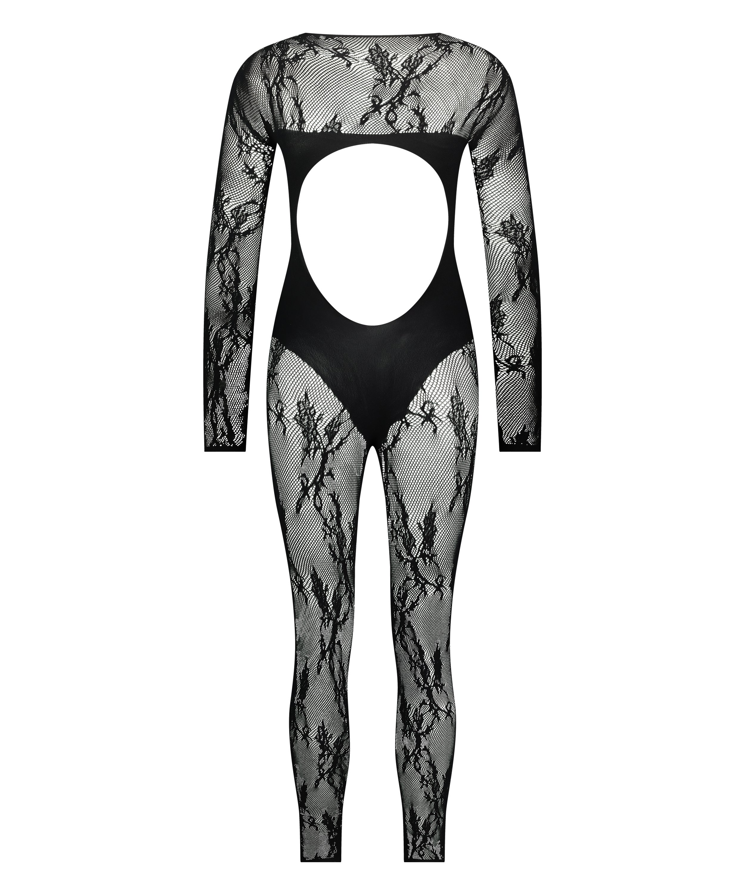 Fremhev figuren din med catsuiten du bare må ha denne sesongen! Den har et elastisk svart blondemateriale, lange ermer og et jumpsuit-design. Kle deg pent med favoritthælene dine, eller bruk den alene som et enestående undertøy.