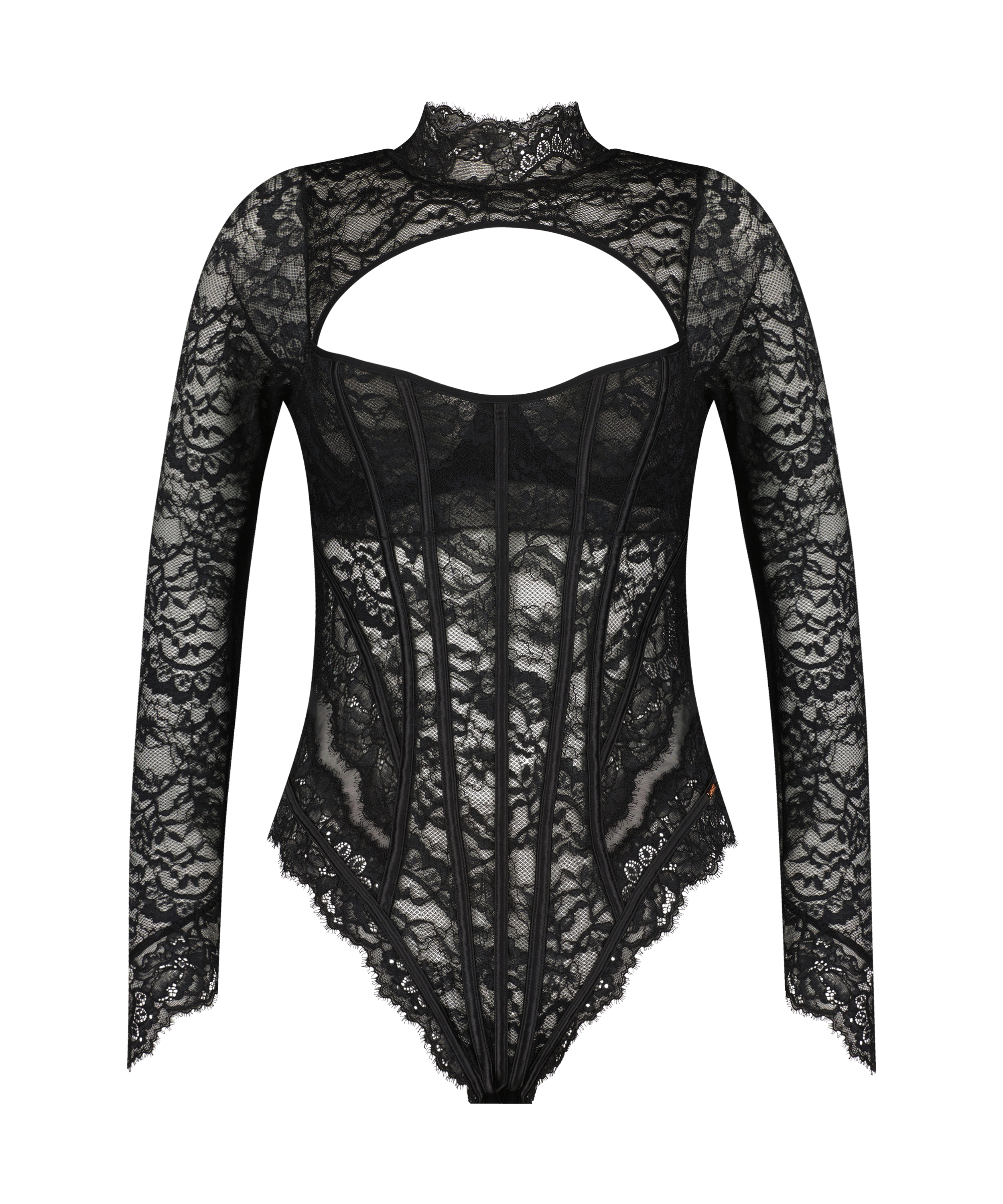 Denne bodyen er et absolutt must i garderoben din! Laget i blonder og med lange ermer. Så den kan du bruke sammen med jeans! En del av Noir-kolleksjonen.