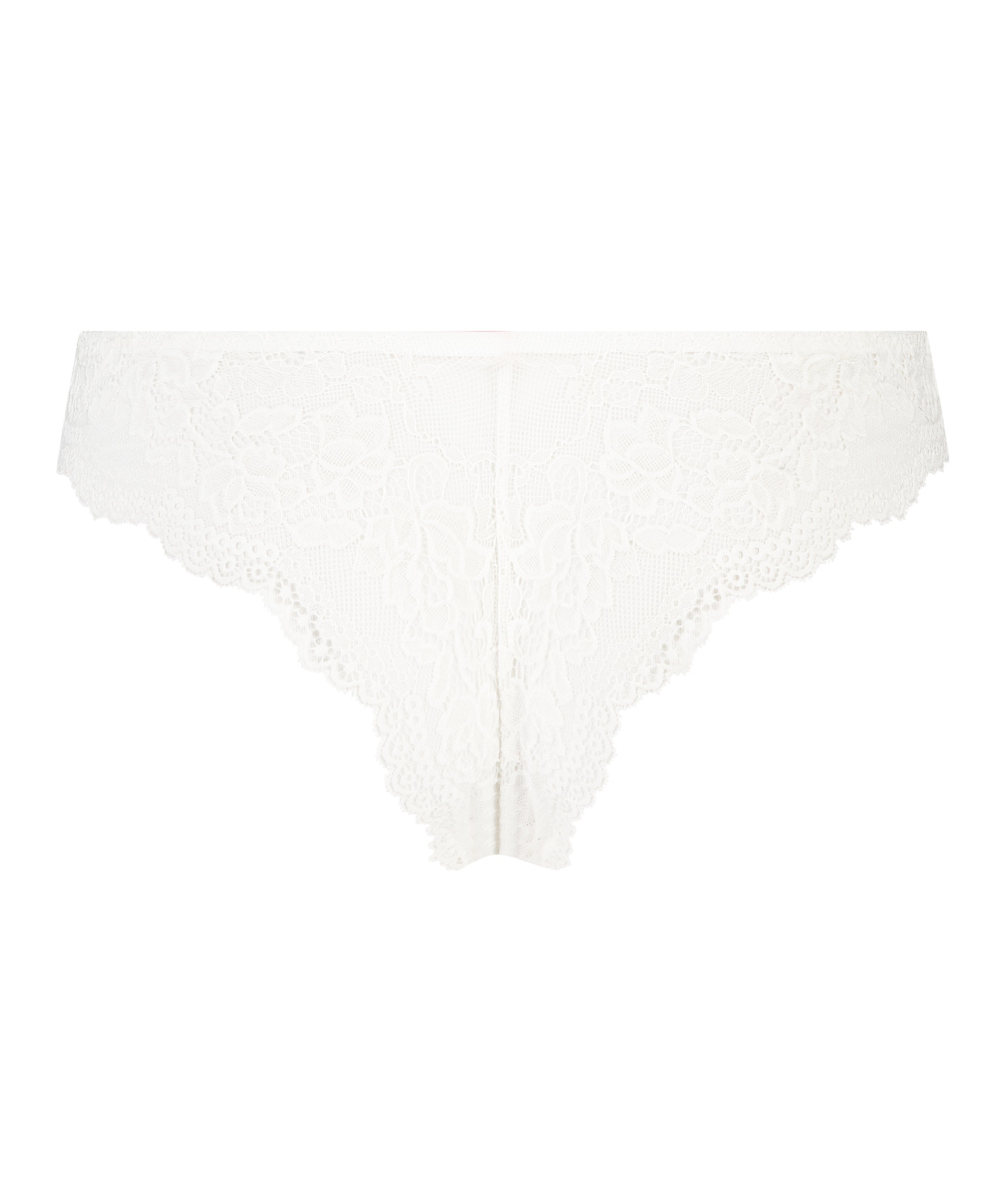 Føl deg sexy i denne brasilianske trusen! Den brasilianske trusen er forseggjort med blonder over det hele og har en liten sløyfe foran som ekstra detalj. Kombiner med en matchende BH og du har et komplett sett!