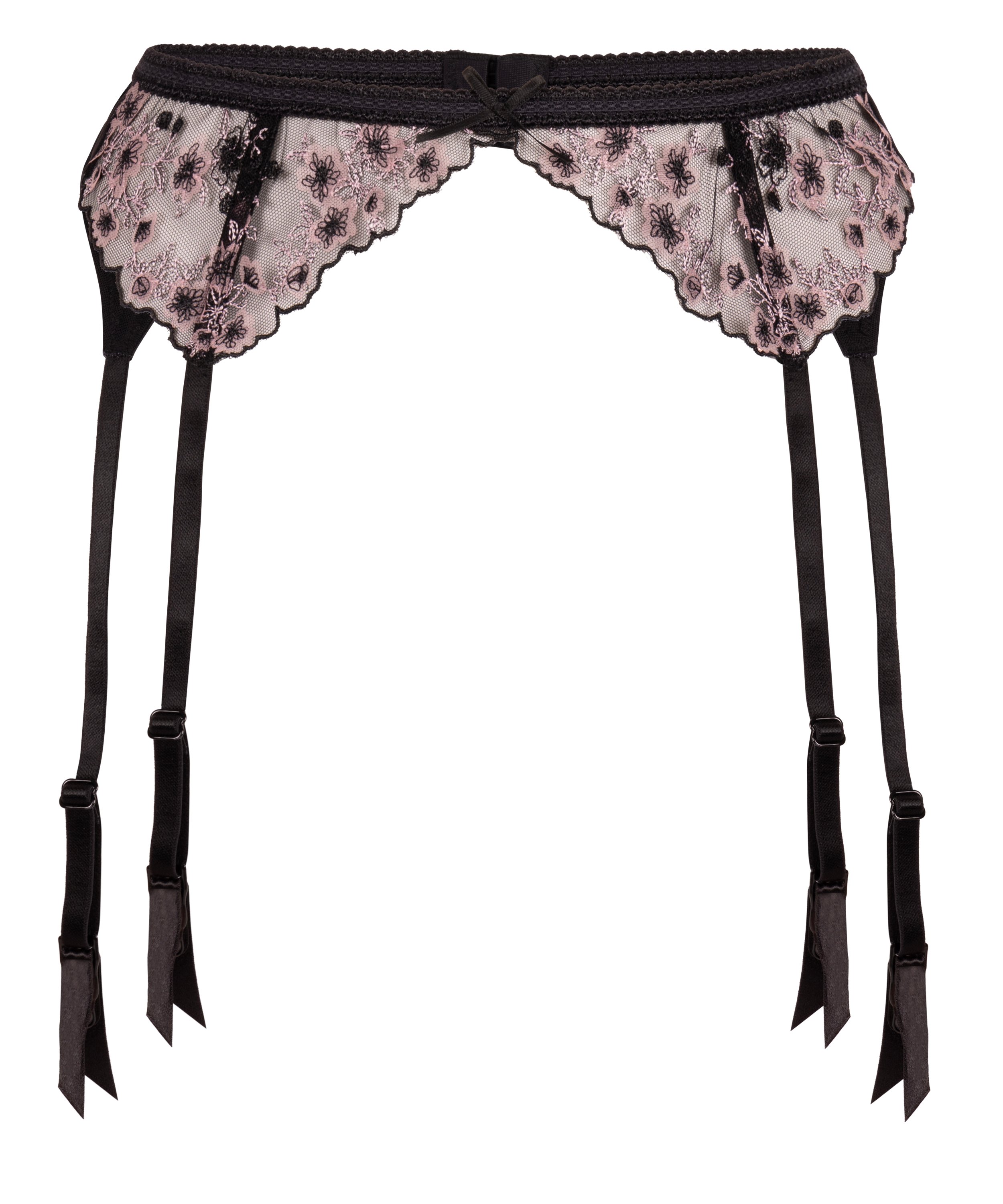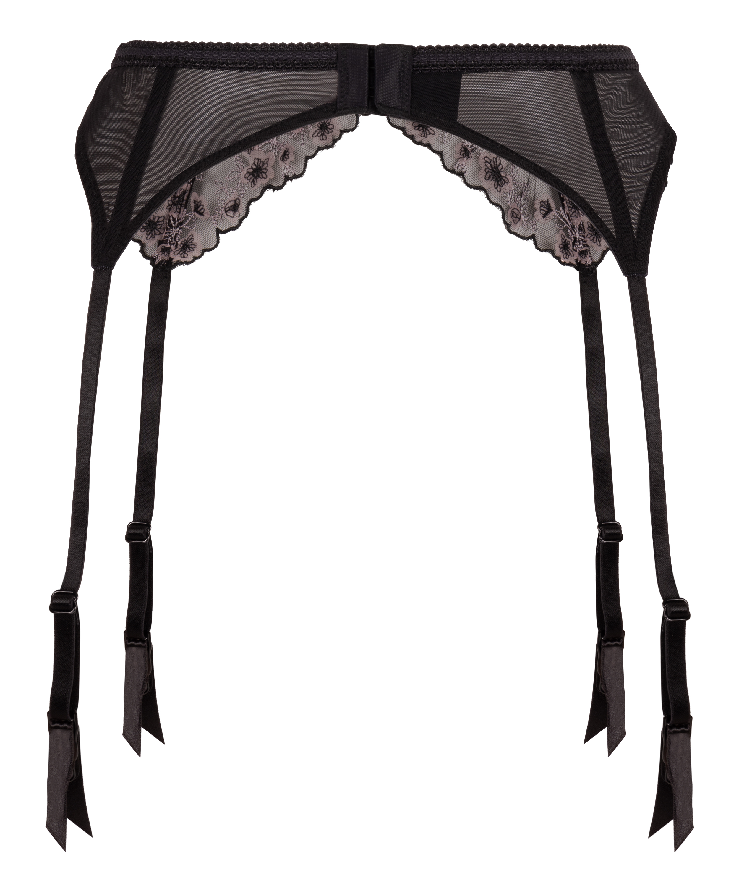 Dette suspenders-beltet setter et tidløst preg på undertøysstilen. Det er designet for å sitte jevnt og glatt i midjen, og har justerbare stropper for en perfekt passform og sikkert grep på favorittstrømpene dine. Kombiner med det matchende undertøyssettet for en komplett look.