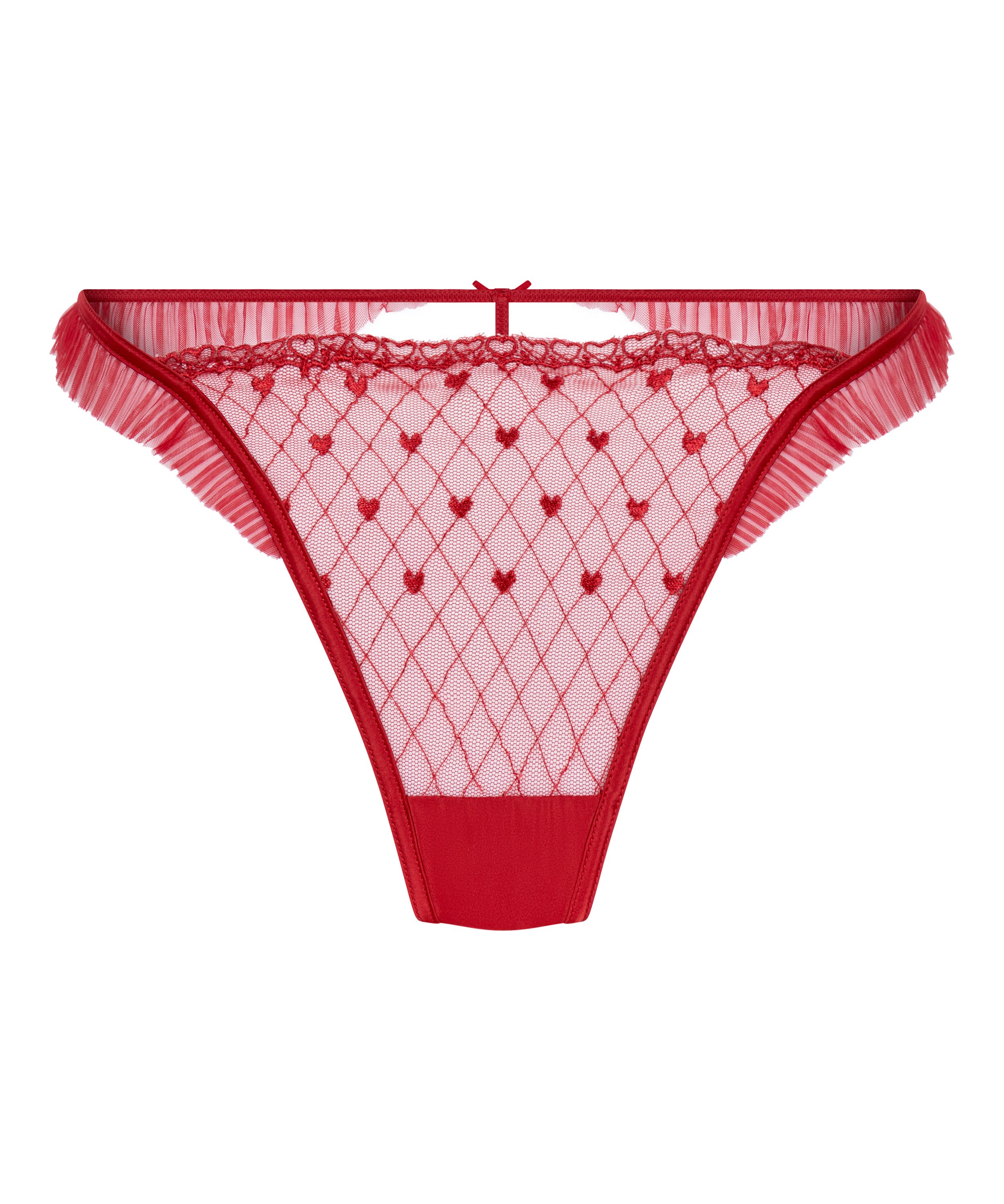 Fullfør looken med denne mesh-strengen designet med et snev av glans for ekstra glamour. Det transparente stoffet og det minimalistiske snittet skaper en sexy, men likevel elegant silhuett. Den er lett og pustende, og passer perfekt sammen med den matchende trekant-braletten for et koordinert sett. Et must for alle som elsker glitrende undertøy!