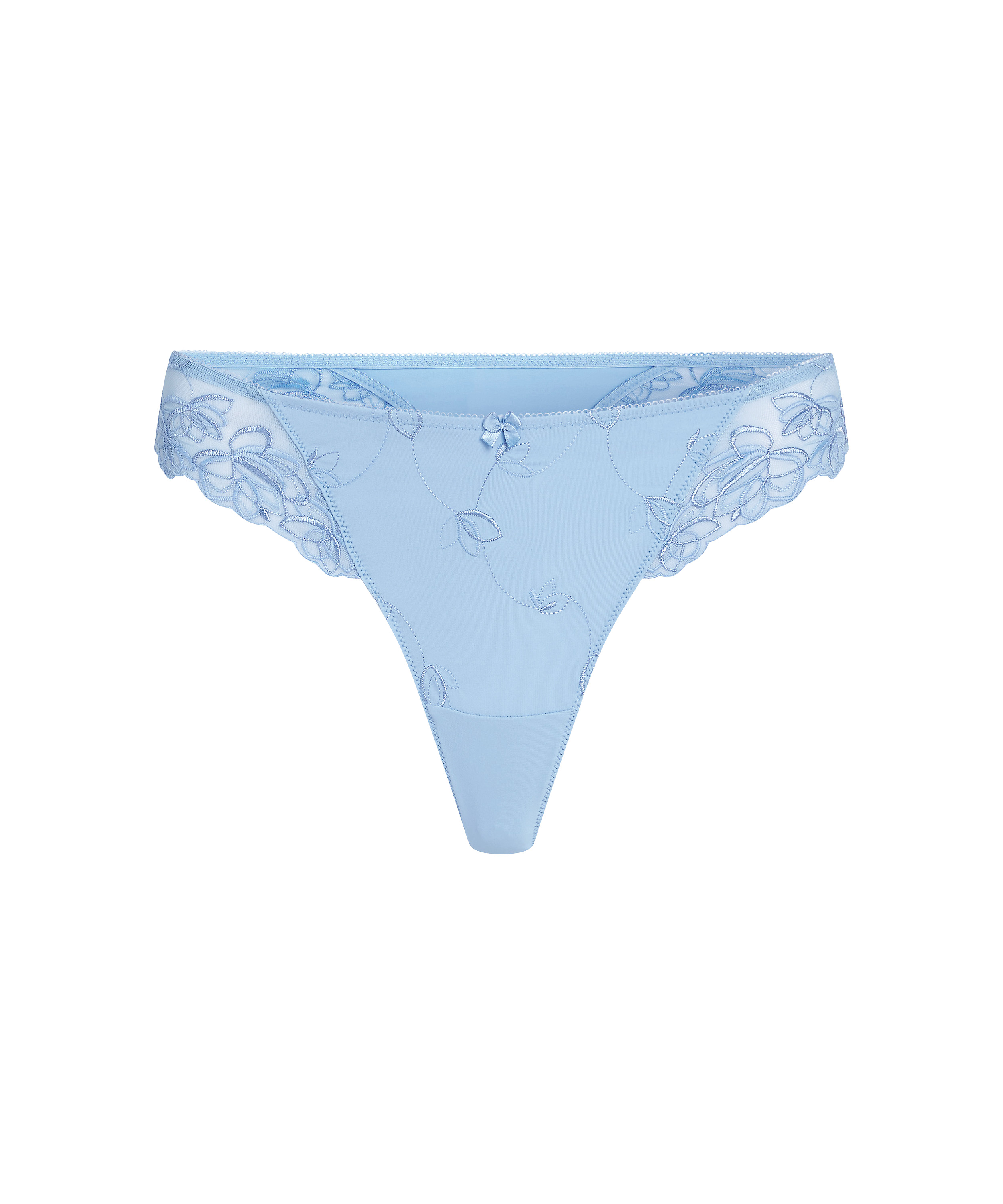 These thong shorts with floral embroidered lace are a positive way to start your day. The front is finished with semi-transparent fabric.