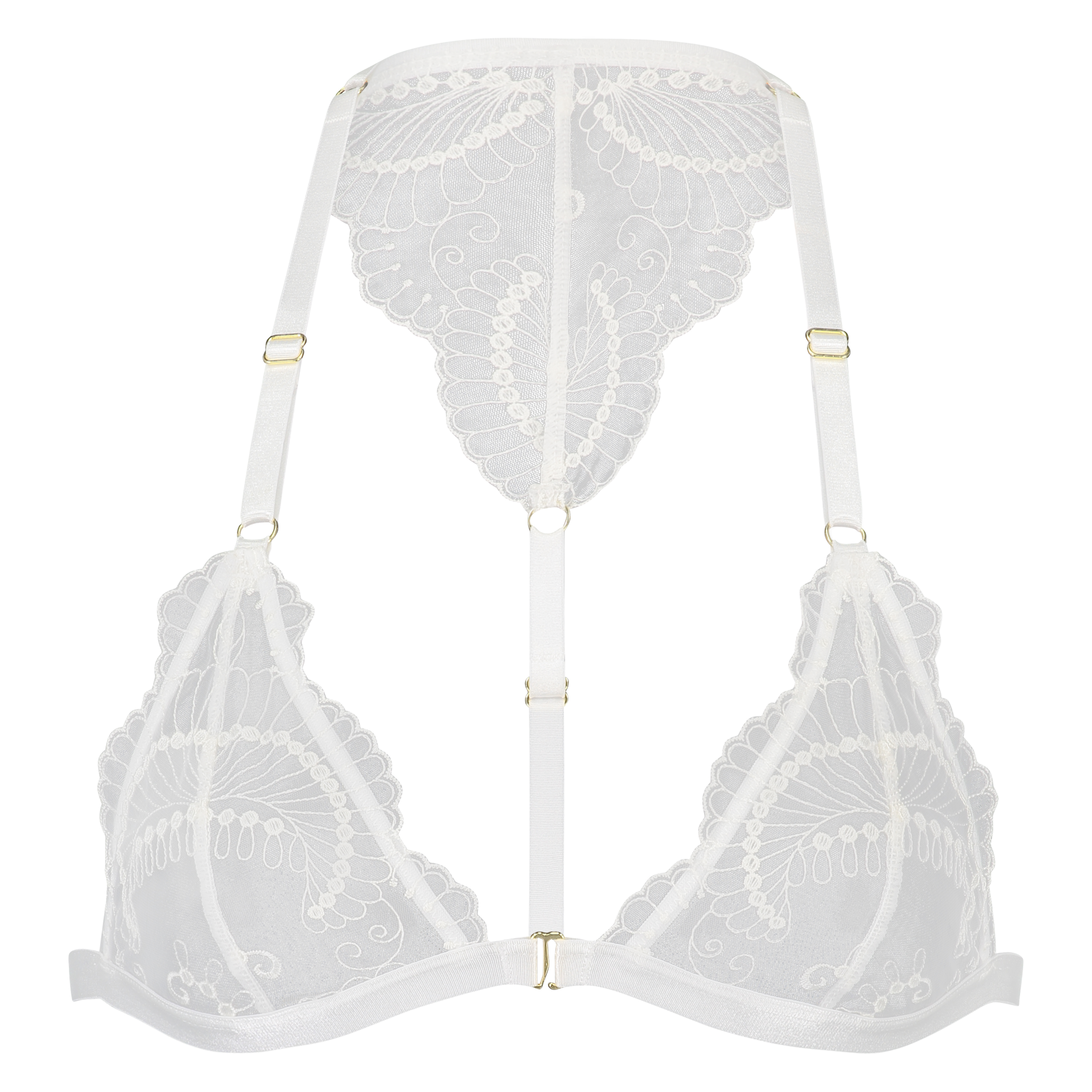 Racerbacks have become a real fashion trend. This lace bralette is a must-have for your collection. The closure is on the front, making it easy to put on and take off.