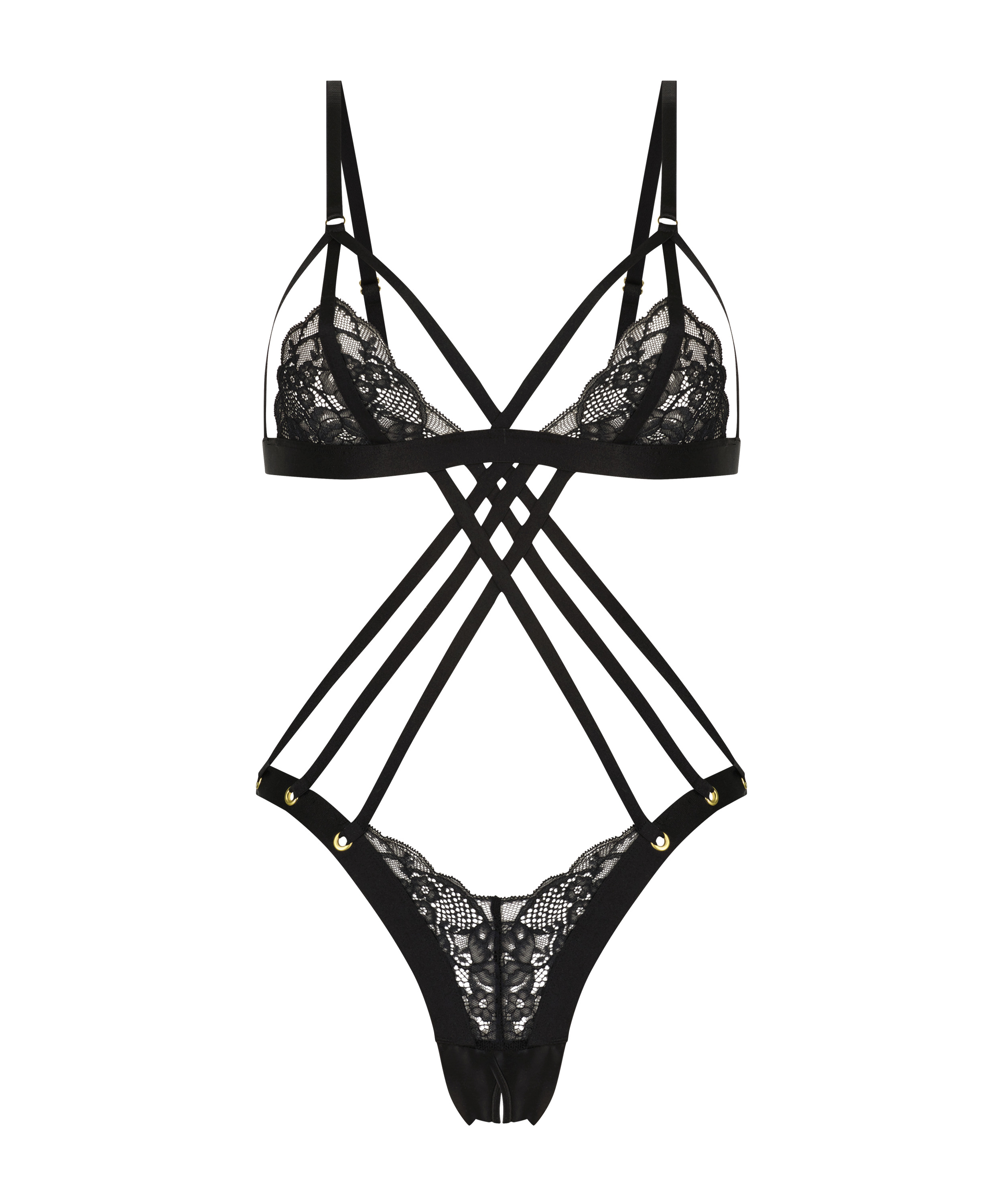 Du får garantert en spennende kveld med denne supersexy bodyen fra Private-kolleksjonen! Bodyen har åpent skritt og mengder av sexy stropper. Fra vår Private-kolleksjon.