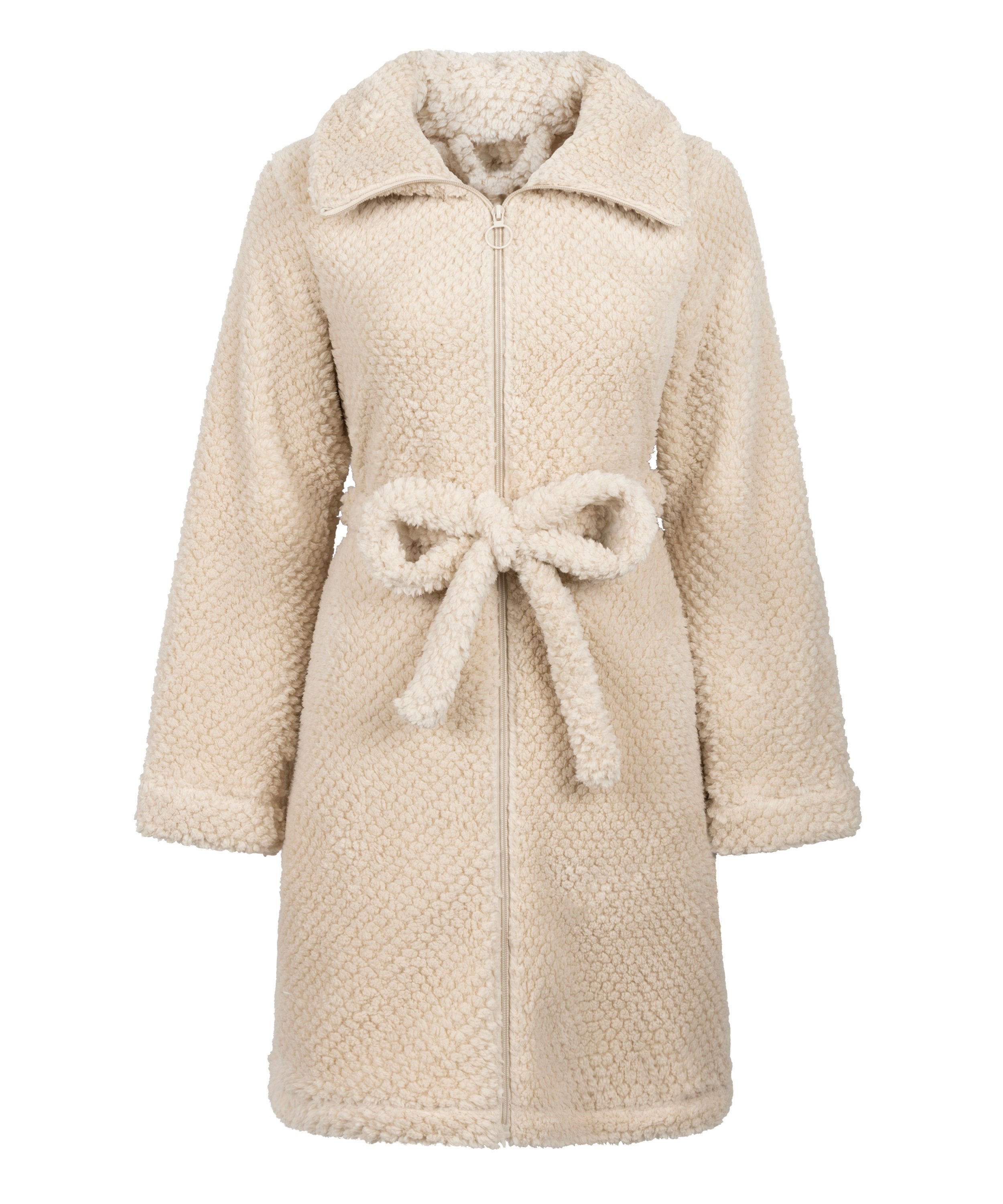 Omgi deg med komfort med denne fleecebadekåpen med glidelås, designet for uanstrengt komfort og en behagelig passform. Den er laget av ultramyk fleece og gir myk varme uten å være klumpete, noe som gjør den perfekt for kjølige morgener, avslappede kvelder eller avslapning etter dusjen.