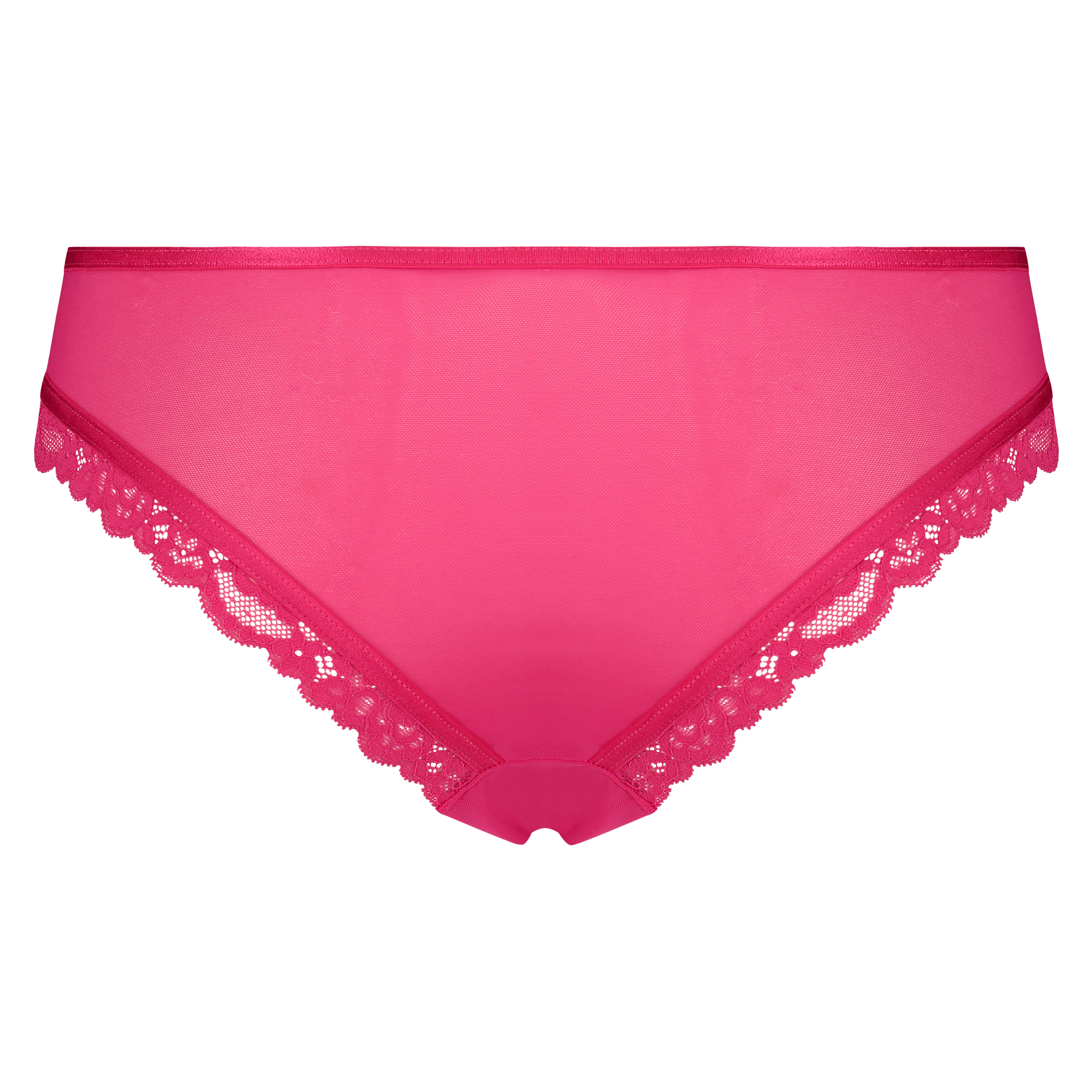 Føl deg sexy med denne brasilianeren! Det er flere utskjæringer foran. Denne brasilianeren er dekorert med masse blonder og netting. Miks og match med et av de matchende plaggene.