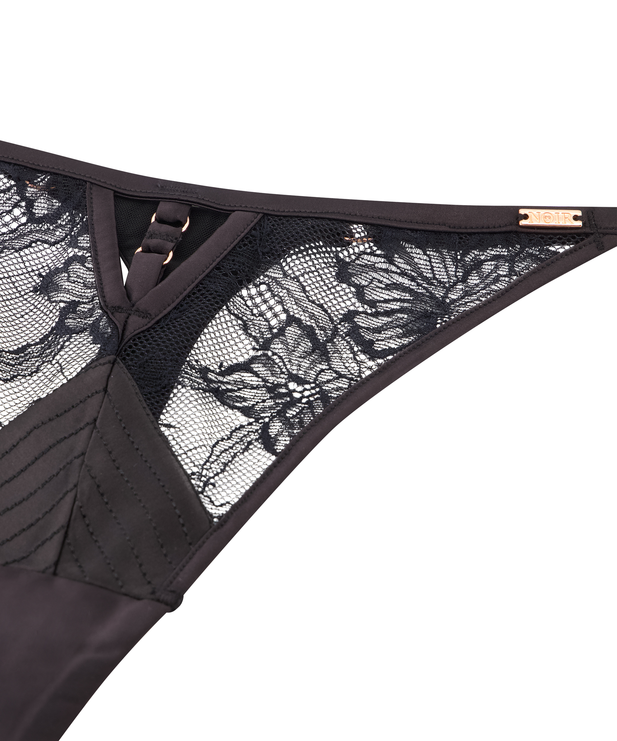 Se fantastisk ut i denne g-strengen! Den er halvgjennomsiktig og har en utskjæring foran som gjør g-strengen superelegant. Denne g-strengen har en høy passform. Kombiner med matchende BH. Denne g-strengen er en del av Noir-kolleksjonen.
