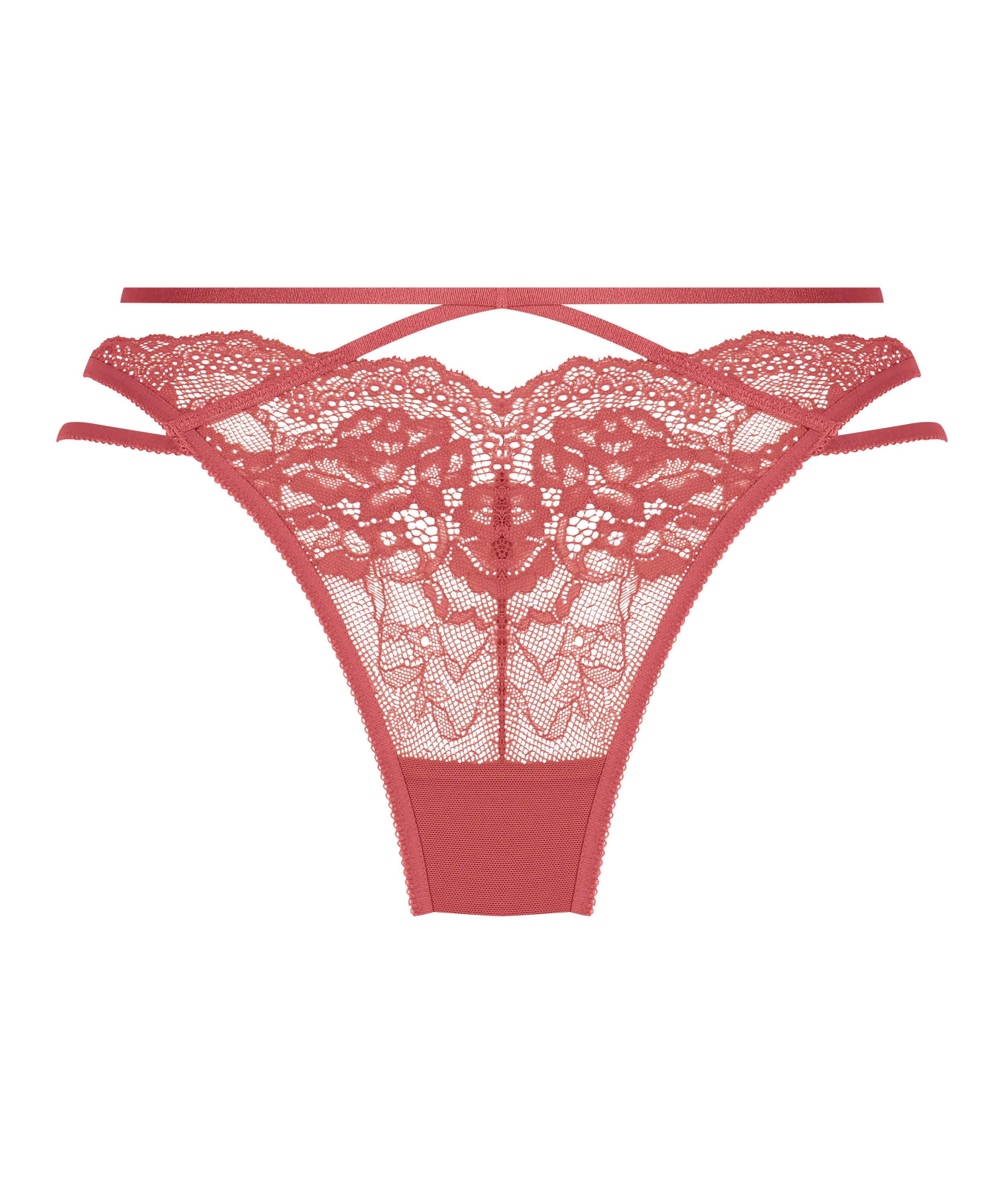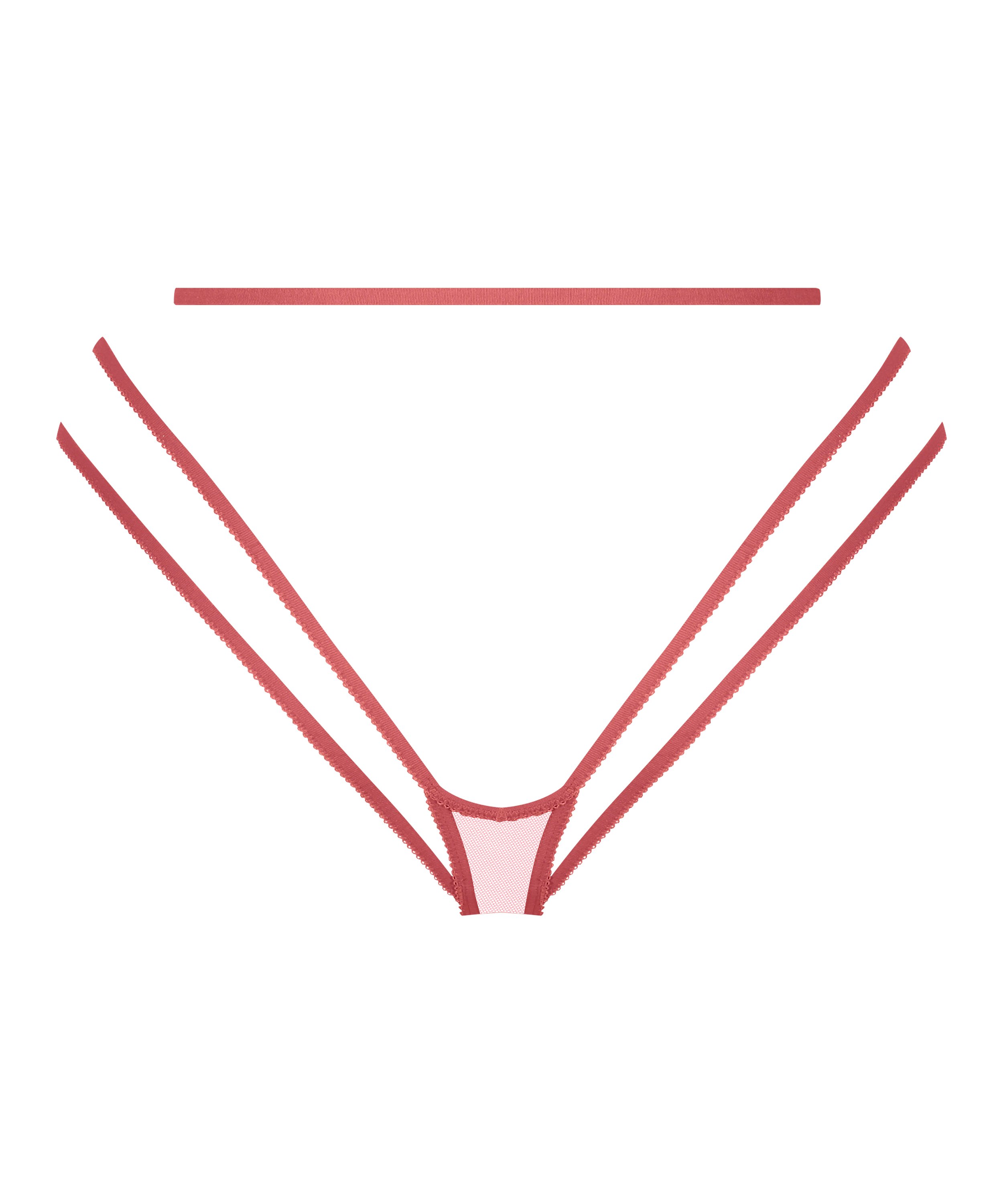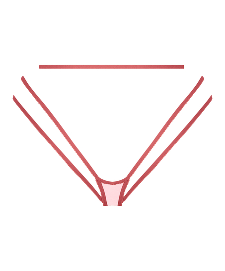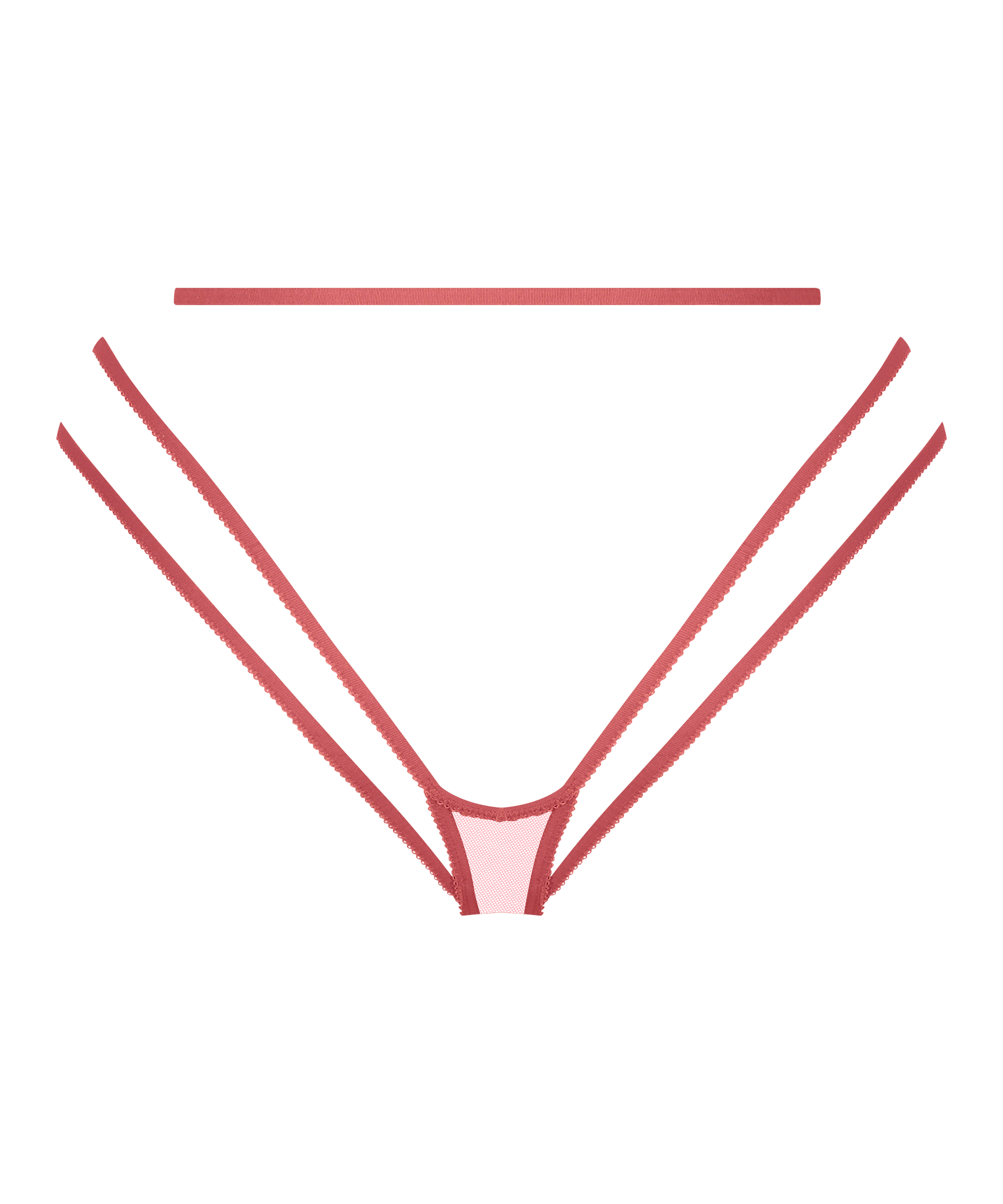 Denne g-strengen vil du ha! Trusen er supersexy ved at det er mye naken hud som synes gjennom de strappy detaljene - og samtidig så elegant på grunn av blondene. Kombiner med en matchende BH eller bralette.