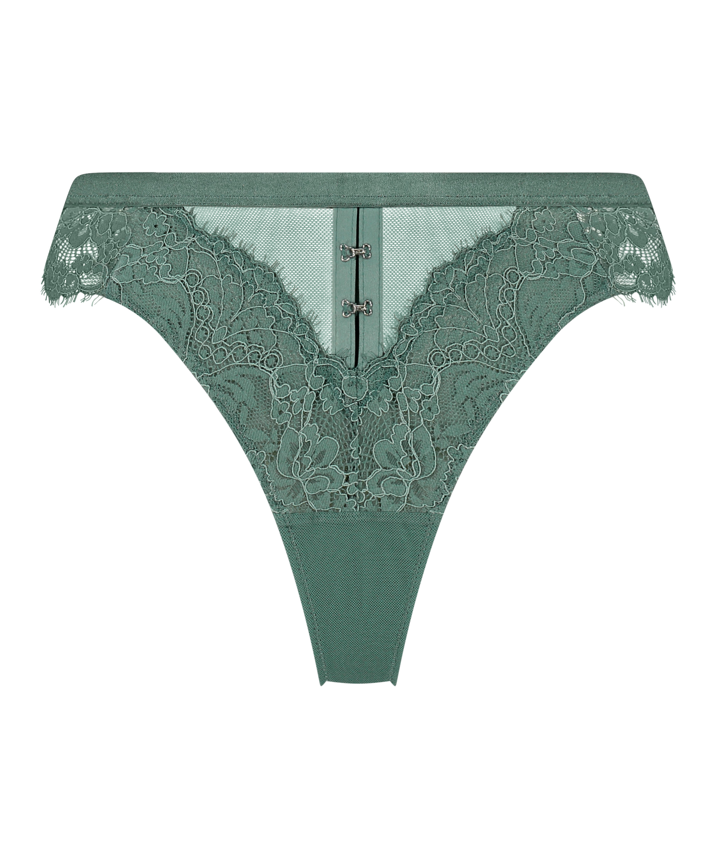 Opplev ren sensasjon med vår forlokkende G-streng! Denne G-strengen er prydet med intrikate blonder og har hekte- og øyedetaljer foran og forførende nettingstoff bak, og er designet for å få deg til å føle deg uimotståelig sexy. Kombiner den med din matchende favoritt-BH, og start dagen med selvtillit og utstråling!