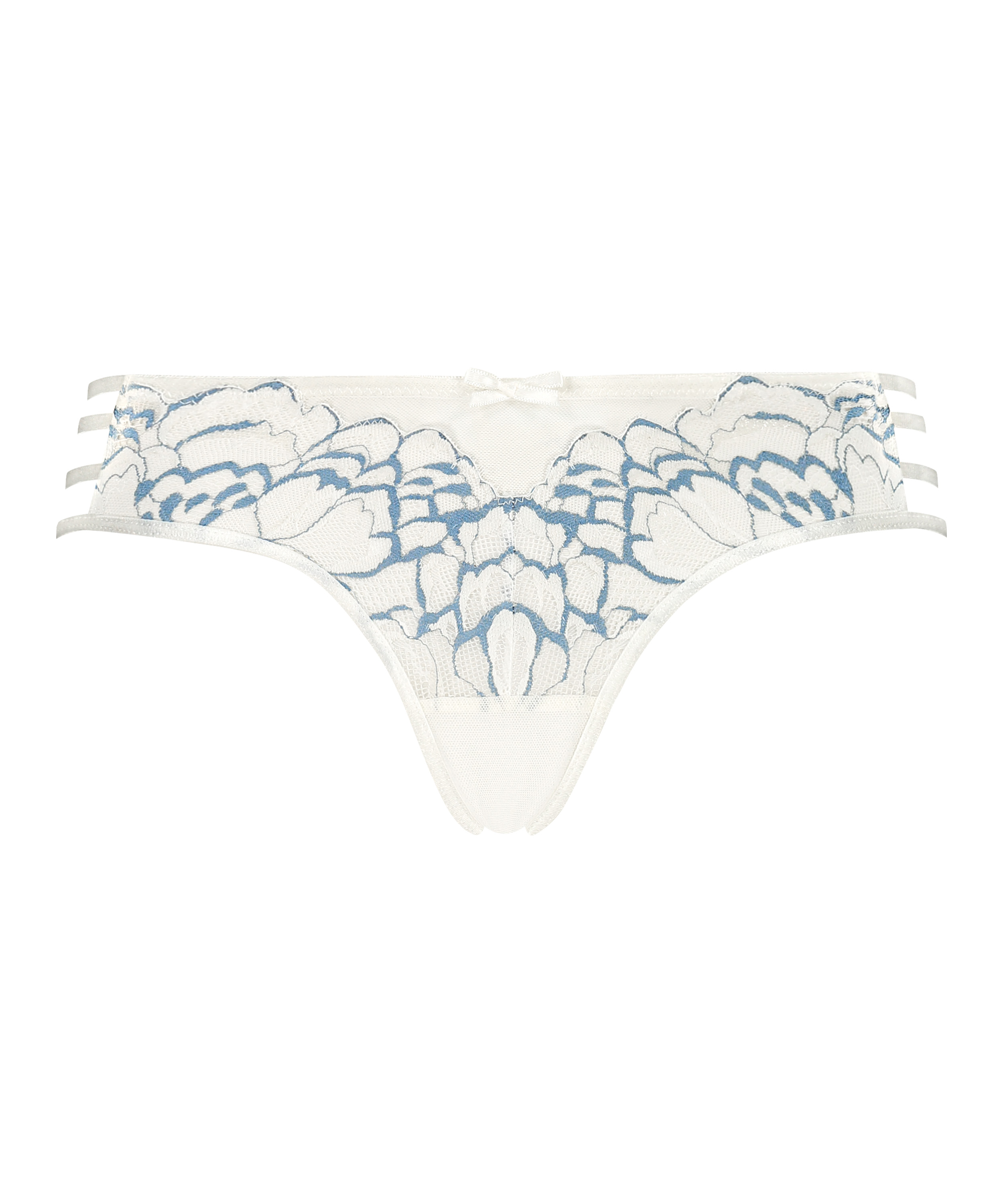 Vi introduserer vårt basisplagg, men unektelig sexy G-streng! Dette plagget har vakkert brodert stoff foran, delikat finish med en sjarmerende sløyfe, og utstråler eleganse og allure. Baksiden er laget av pustende mesh, mens sexy stroppedetaljer på siden gir en ekstra forførende touch. Du kan enkelt kombinere den med din favoritt-BH for å fullføre undertøysantrekket ditt!