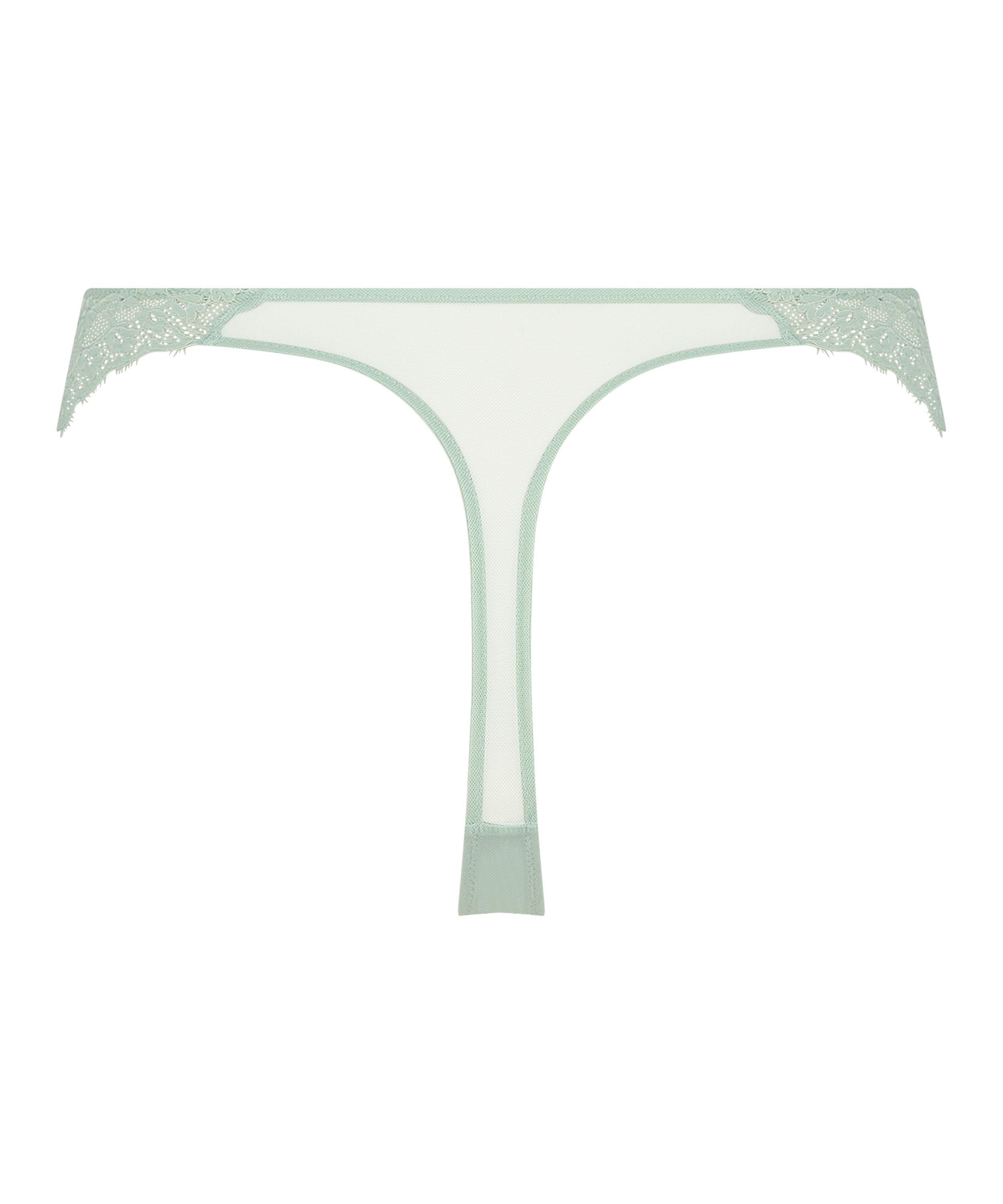 Denne trendy thong har en gjennomsiktig blonde foran og en mesh bak. En liten knapp midt foran setter prikken over i'en.