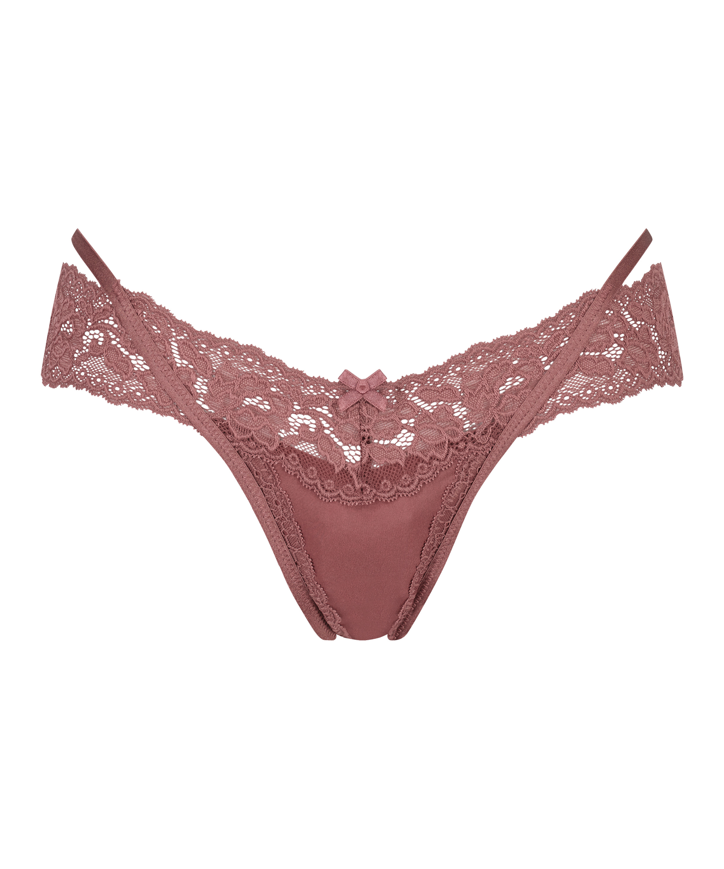 Denne ekstra lave v-strengen har ekstra fine detaljer! Den har strappy detaljer og massevis av blonder. Kombiner med en matchende BH eller bralette for et komplett sett.