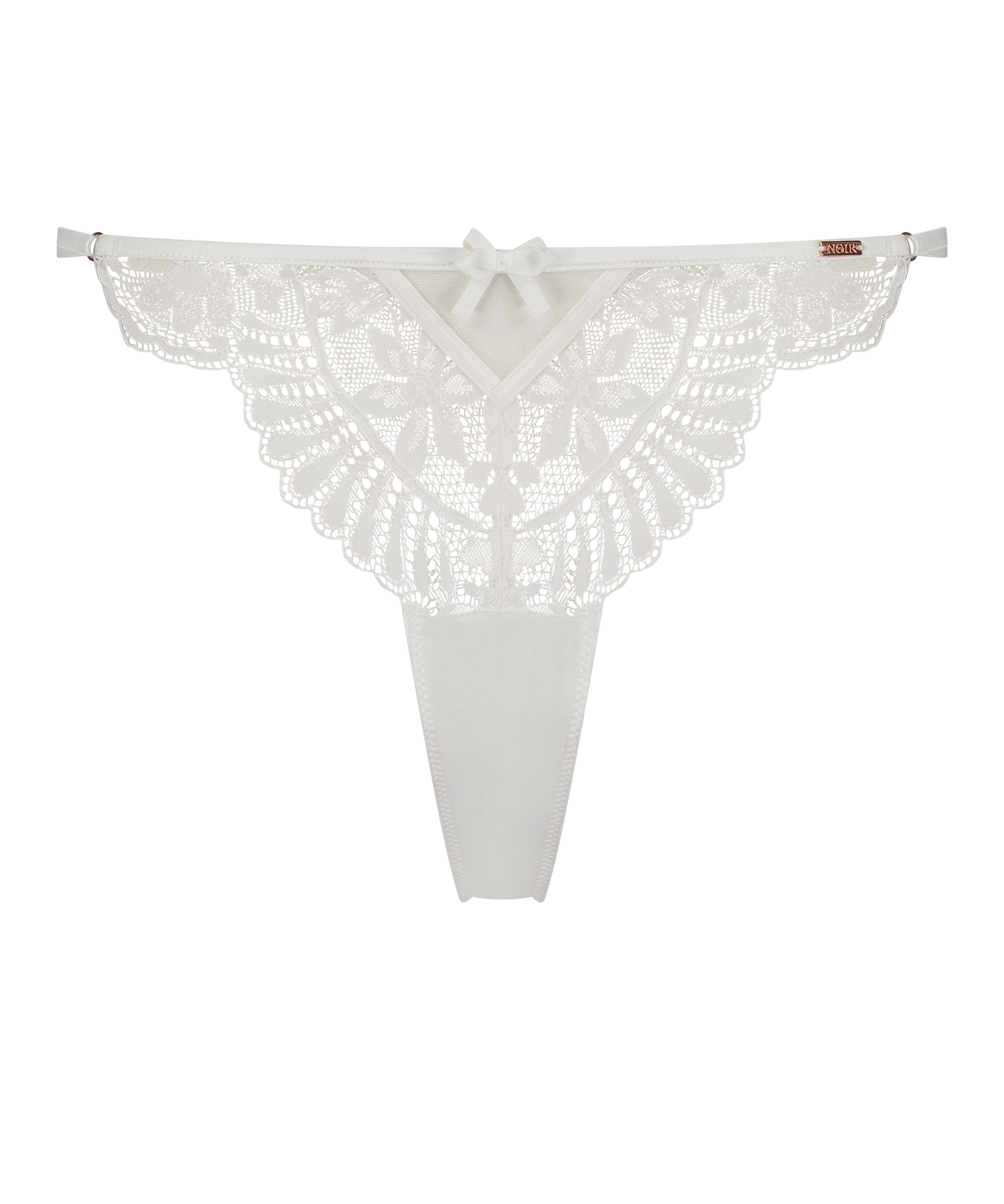 En perfekt g-streng når du ønsker å være dristig og vakker. De åpne blondene setter et dristig og sofistikert preg på g-strengen, og detaljene på stroppene og den søte sløyfen foran gjør den leken. Denne g-strengen er en del av et undertøyssett med mange artikler som matcher hverandre, slik at du alltid kan skape en helt ny look. En del av Noir-kolleksjonen.