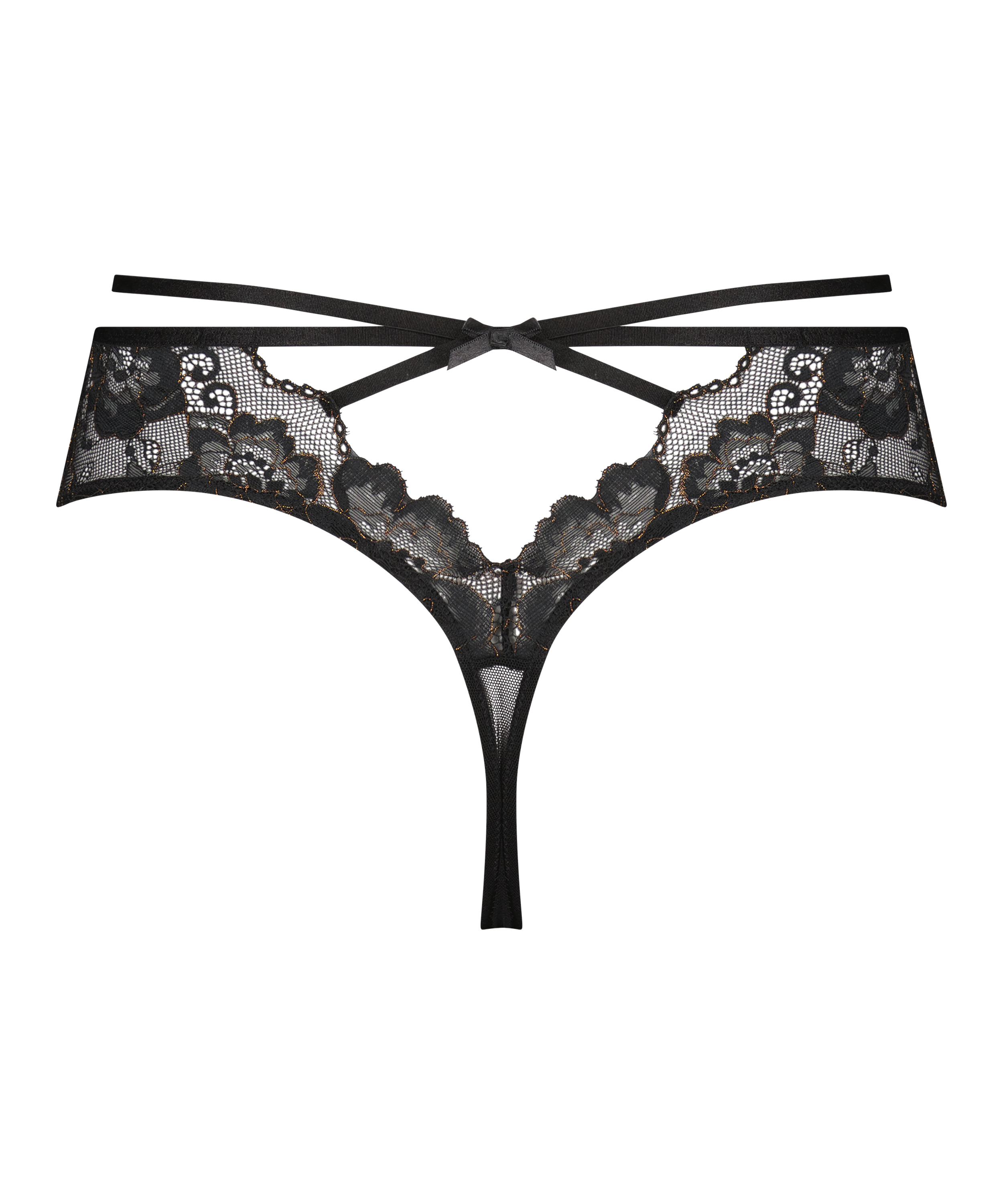 Føl deg supersexy i denne g-strengen! Den er for en stor del av blonder, bak er det en fin sløyfe og de strappy detaljene utgjør en finishing touch. Kombiner med dine egne favorittartikler!