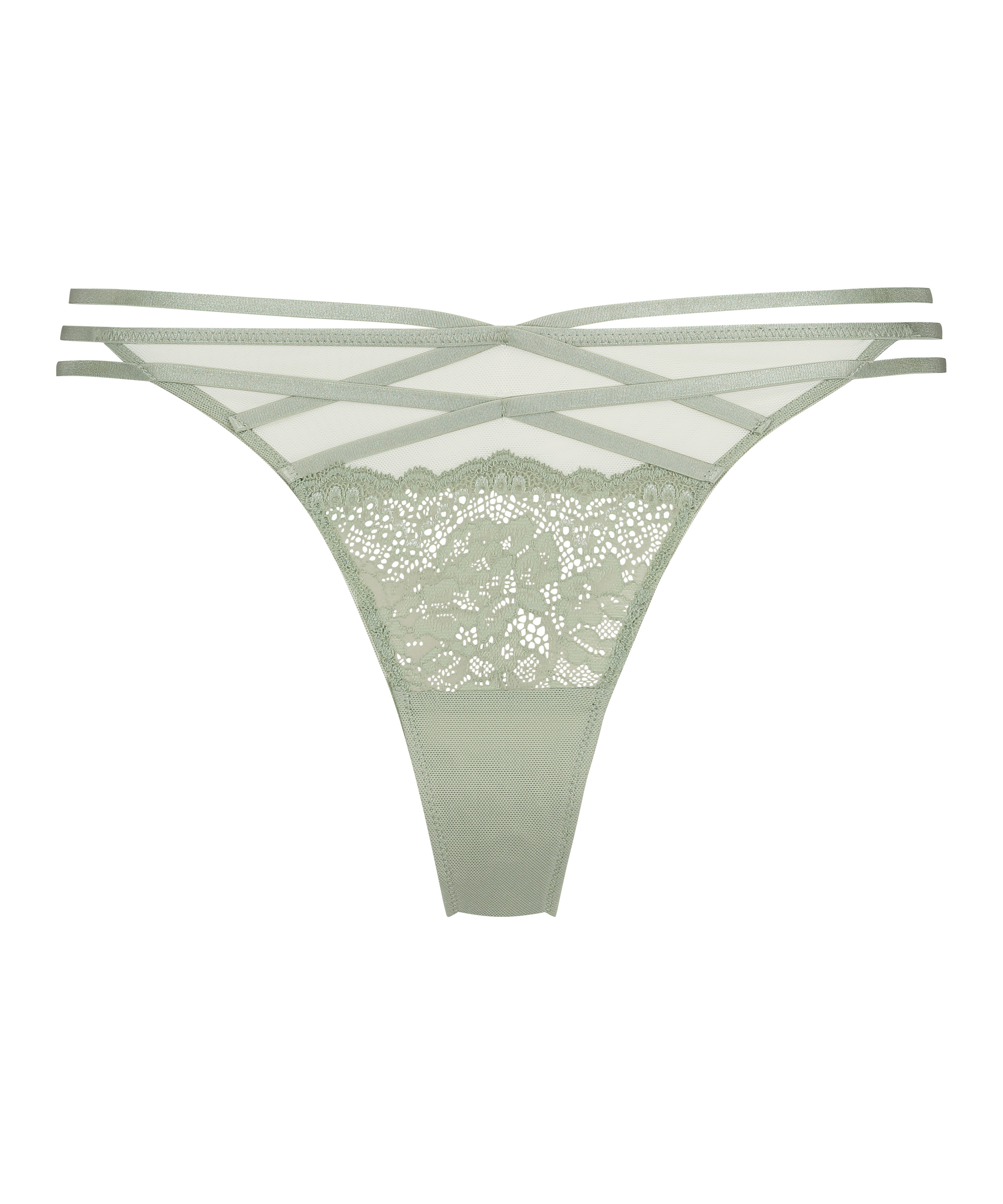 Omfavn kurvene dine i denne sensuelle stringtrusen med høye ben! Denne G-strengen har blondedetaljer foran og mesh bak. Stroppedetaljene rundt hoftene gir en svært sexy passform. Kombiner dette med en av våre nåværende favoritter!