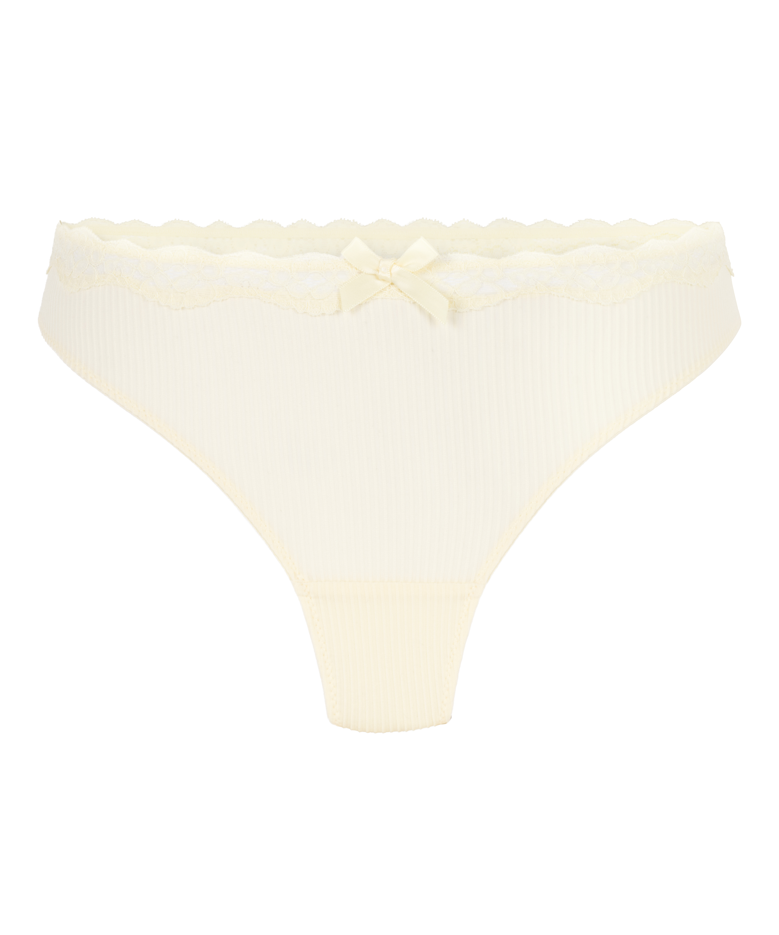 Denne g-strengen er laget av et ribbestoff og forsynt med en blondekant øverst. Sløyfen på midten er virkelig prikken over i-en på g-strengen! Kombiner med den matchende BH-en og du har et komplett sett!