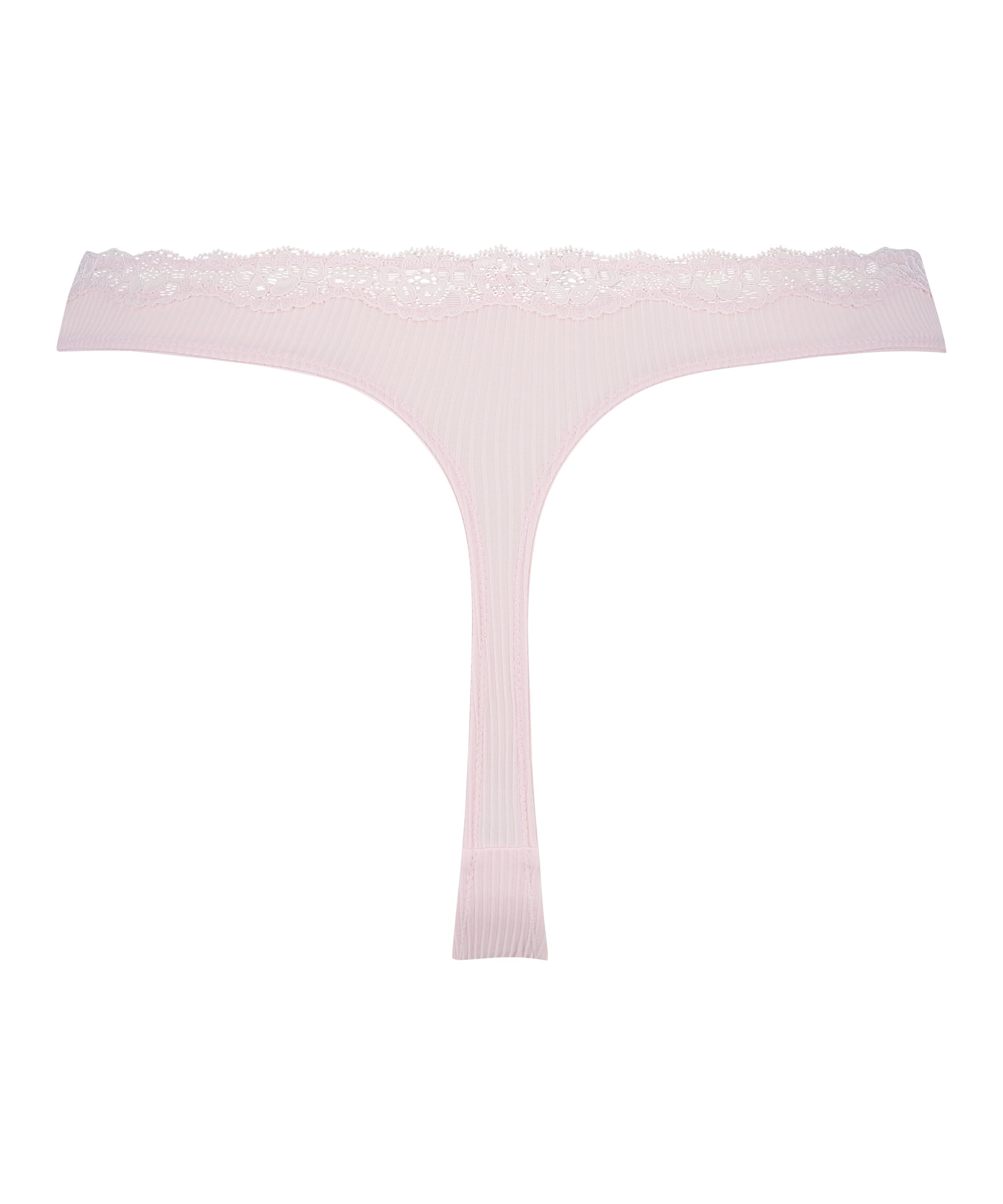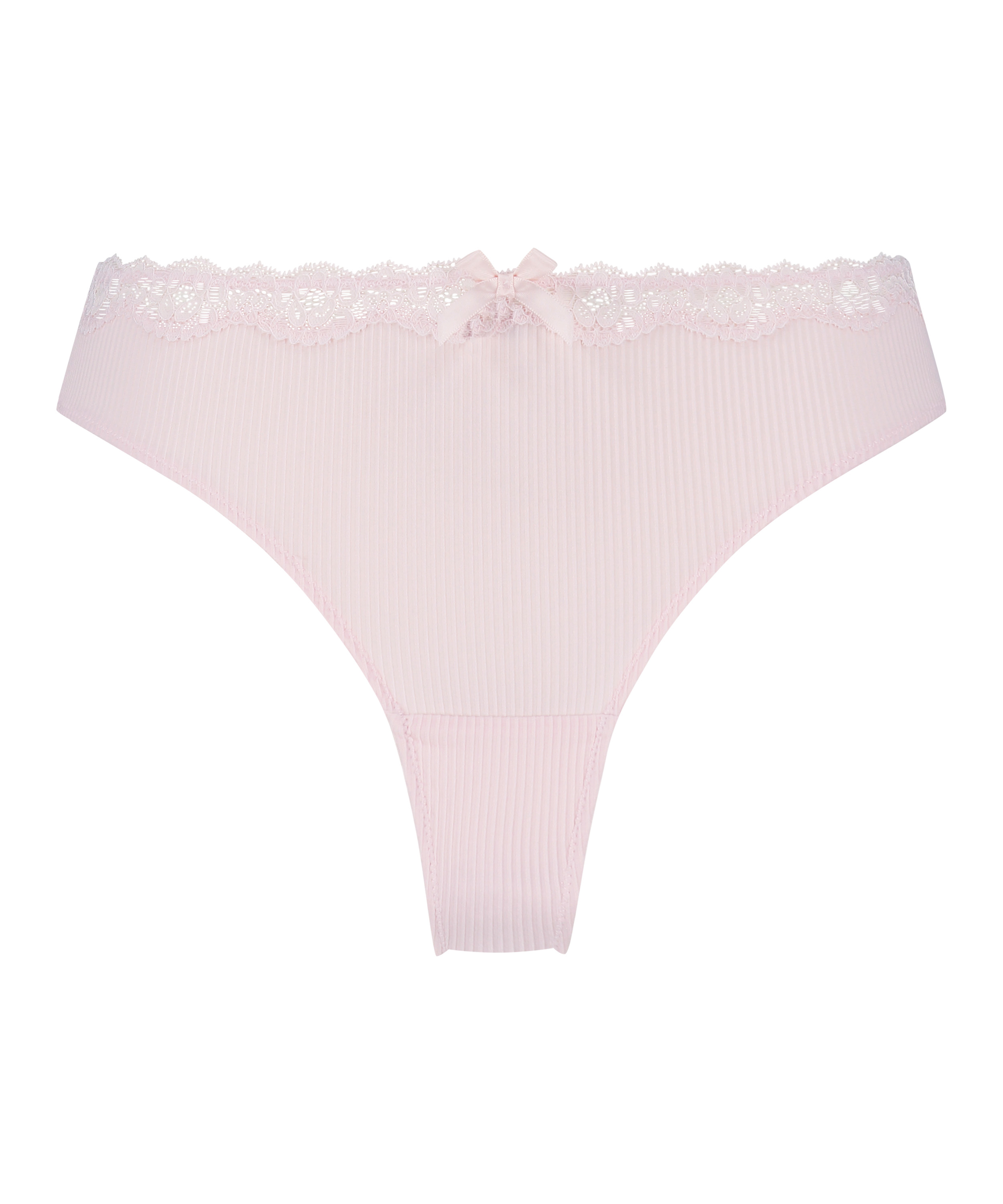 Denne g-strengen er laget av et ribbestoff og forsynt med en blondekant øverst. Sløyfen på midten er virkelig prikken over i-en på g-strengen! Kombiner med den matchende BH-en og du har et komplett sett!