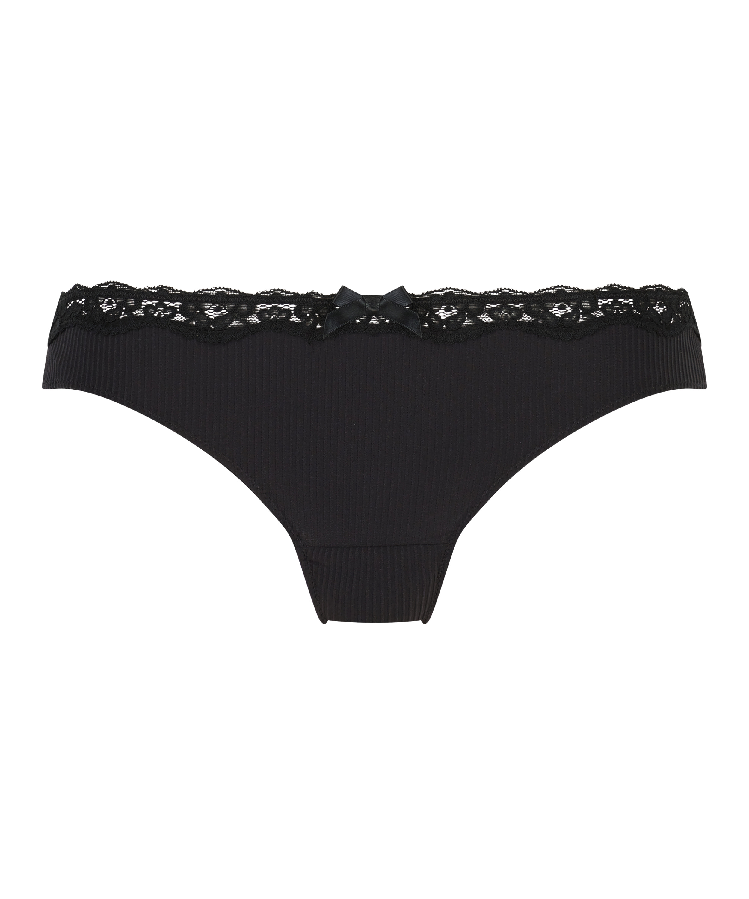 Denne g-strengen er laget av et ribbestoff og forsynt med en blondekant øverst. Sløyfen på midten er virkelig prikken over i-en på g-strengen! Kombiner med den matchende BH-en og du har et komplett sett!