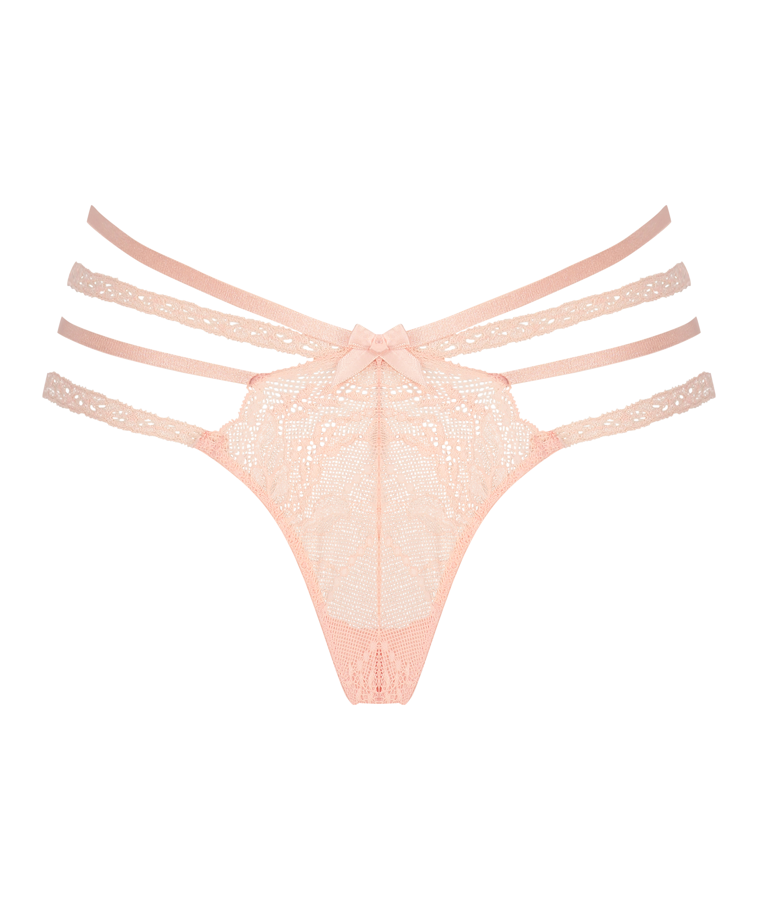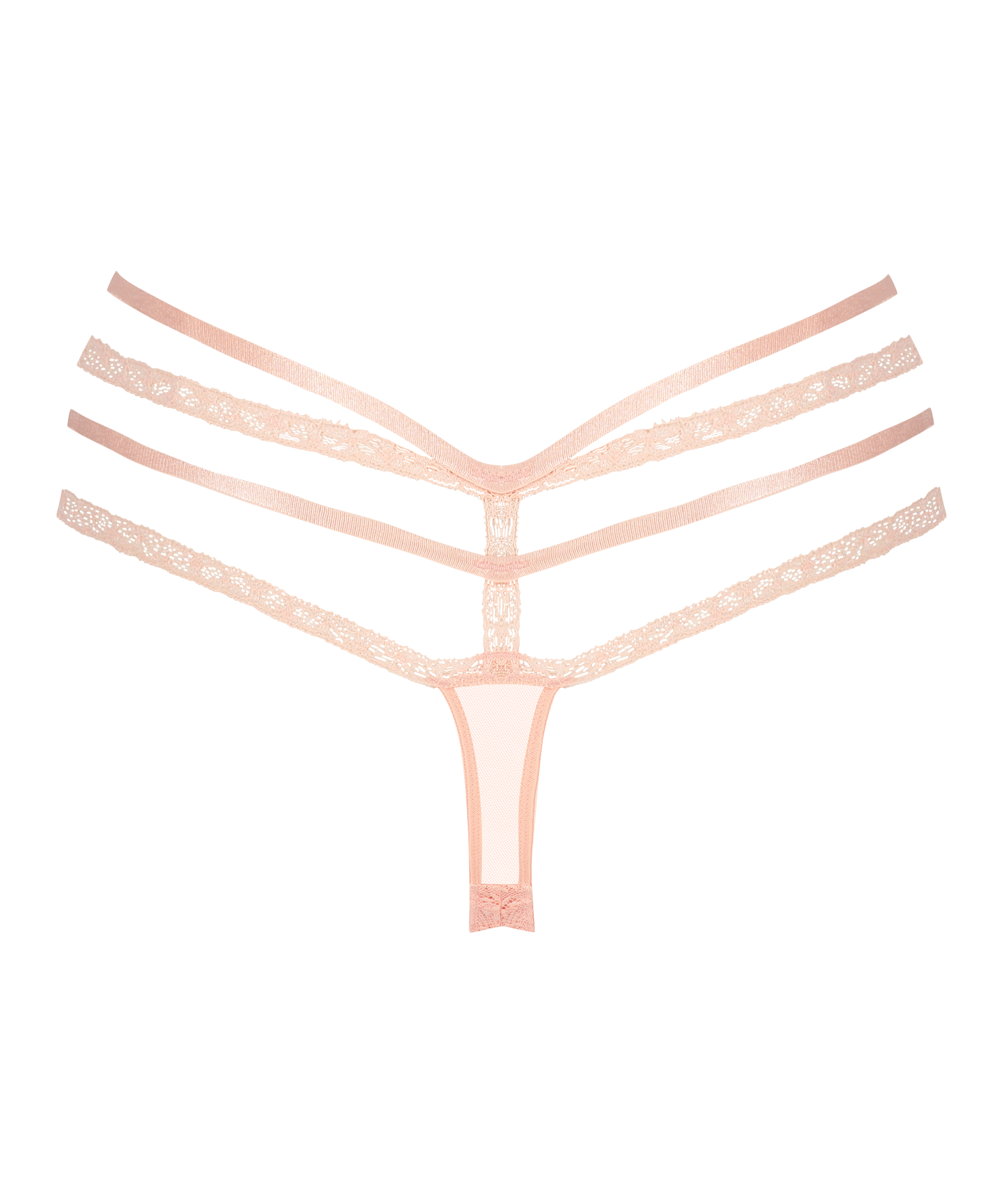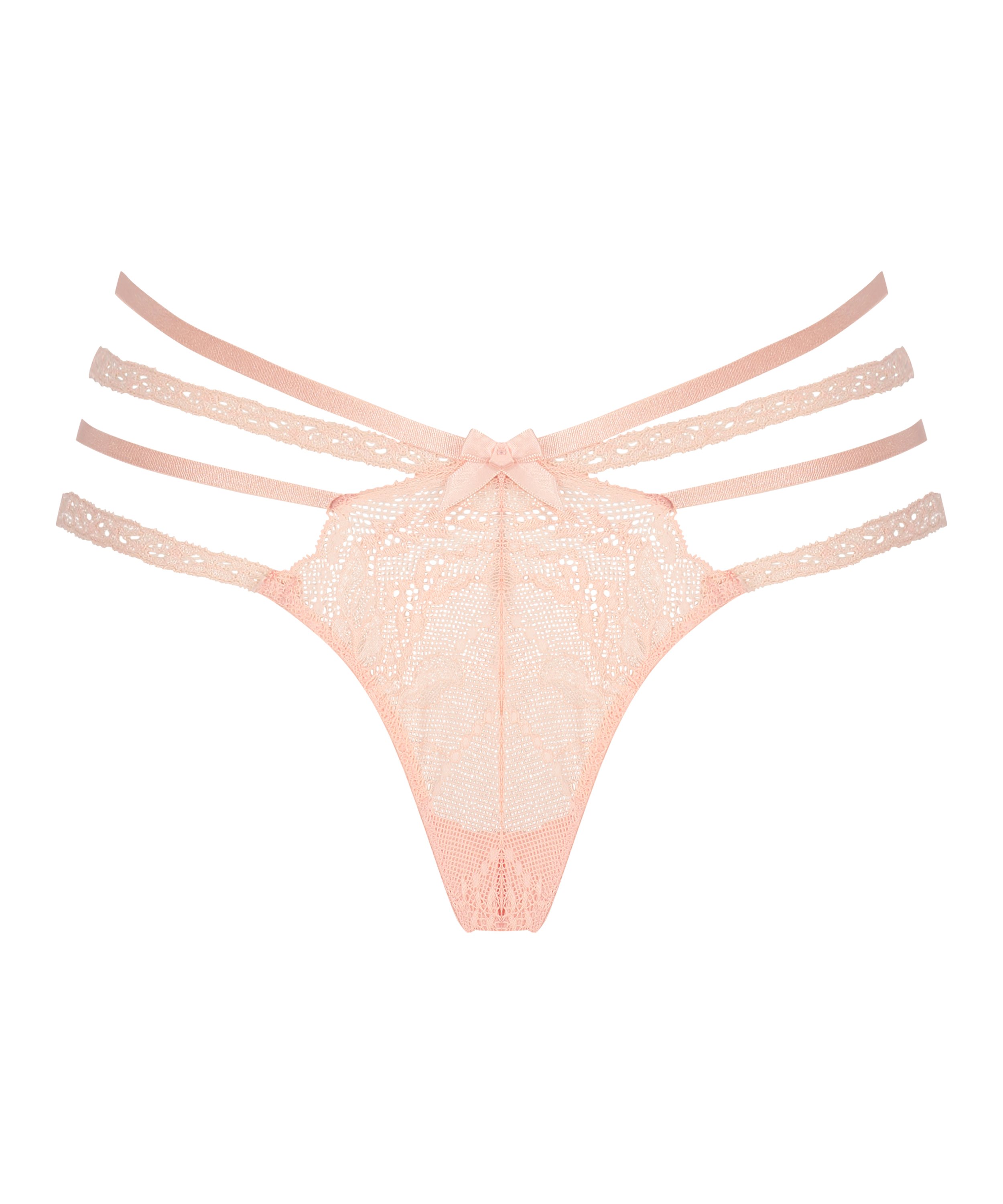 Føl deg supersexy i denne g-strengen! Den er for en stor del av blonder, foran er det en fin sløyfe og de strappy detaljene utgjør en finishing touch. Kombiner med dine egne favorittartikler!