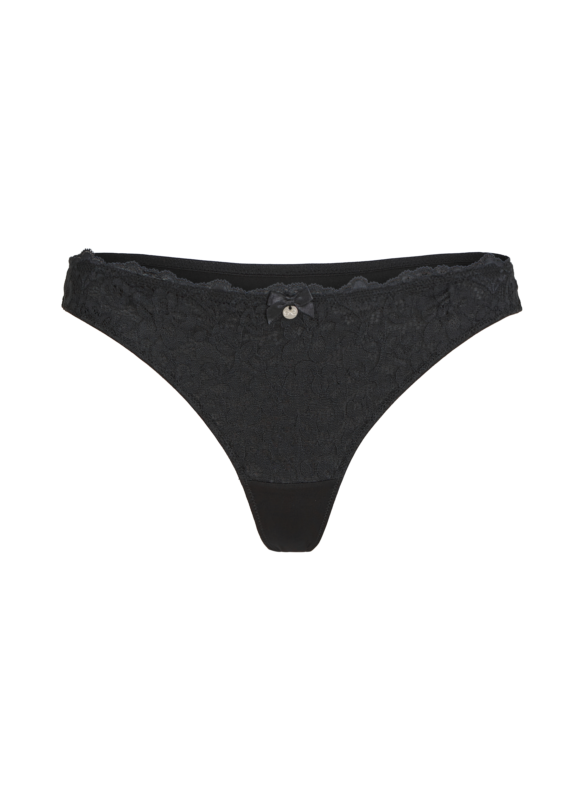Du vil se søt ut i denne thong! Den har blonder helt over med et blomstermønster og er avsluttet med en liten sløyfe i midten. Kombiner med matchende BH for en komplett look.