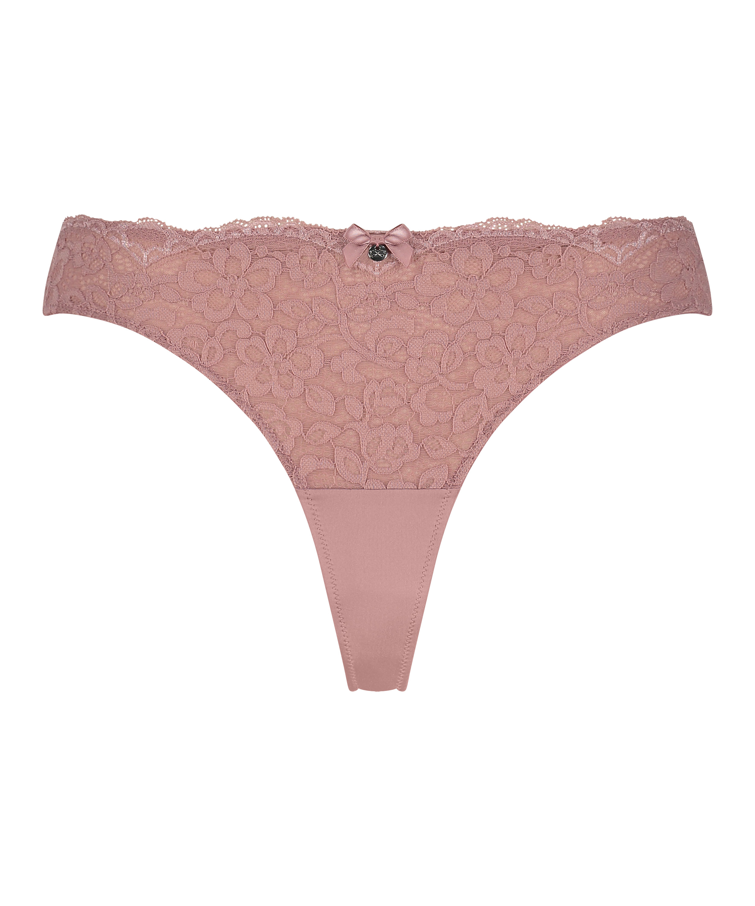 Du vil se søt ut i denne thong! Den har blonder helt over med et blomstermønster og er avsluttet med en liten sløyfe i midten. Kombiner med matchende BH for en komplett look.
