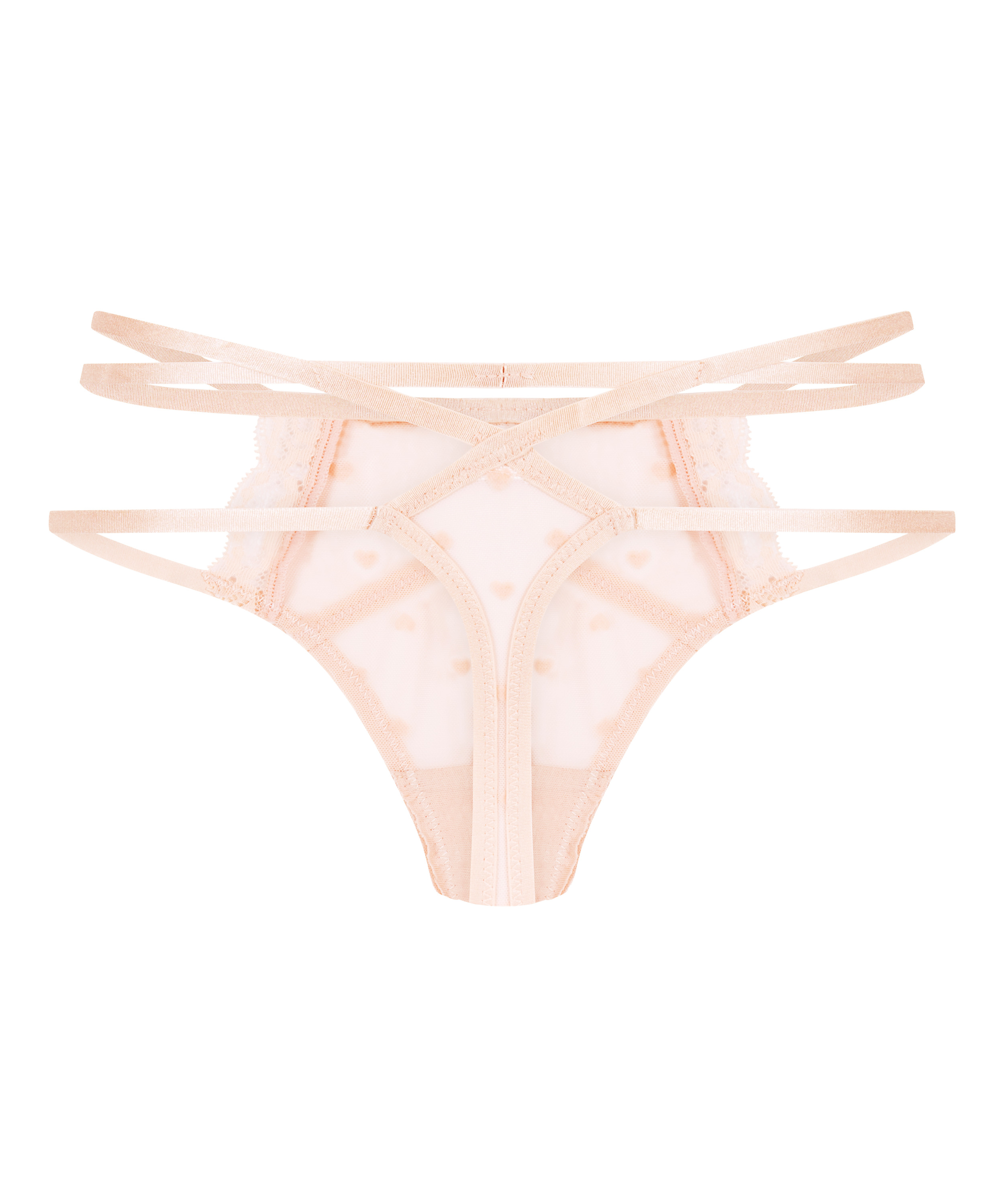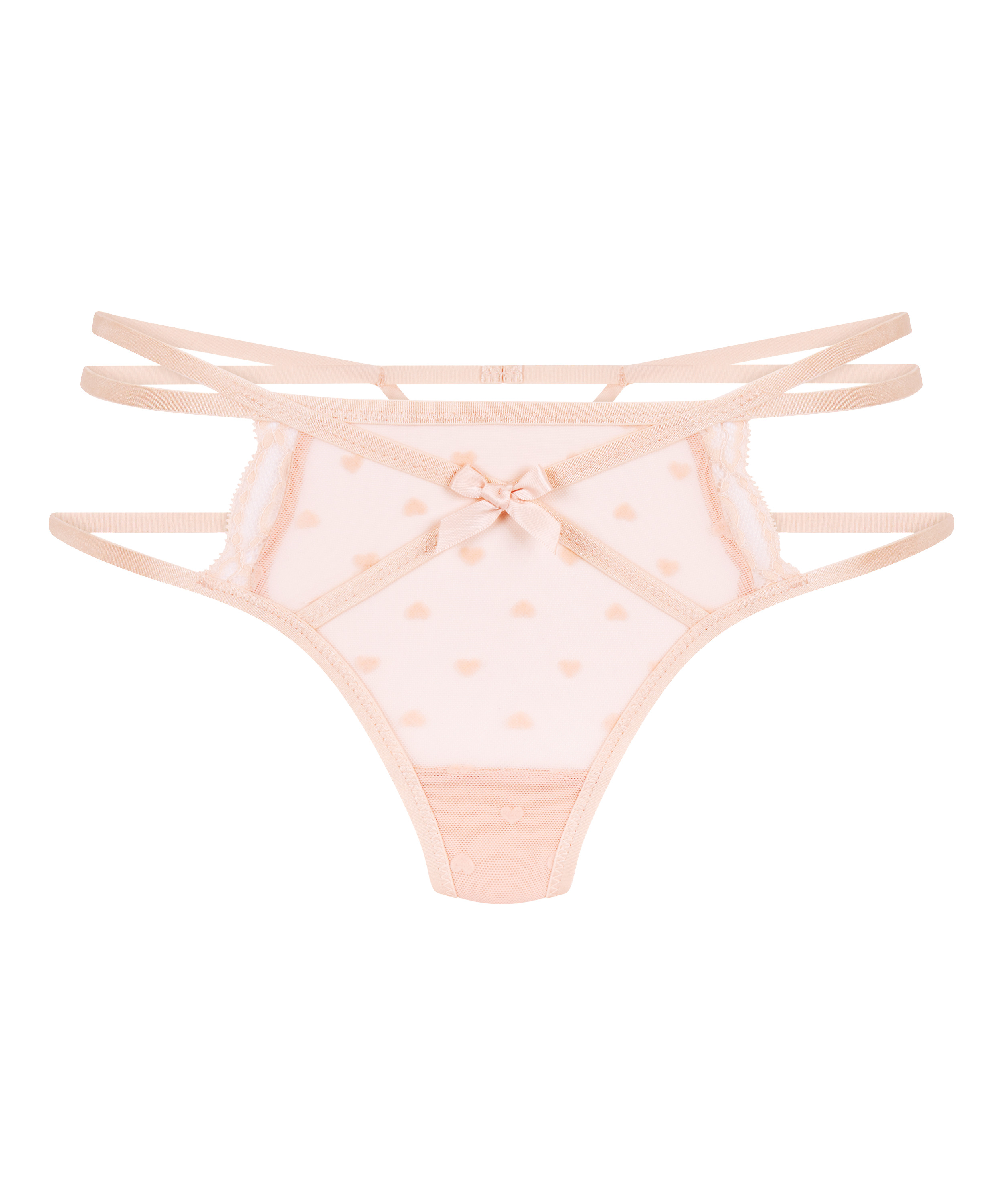 Føl deg sexy i denne vakre g-strengen! Den har mye blonder, en søt liten sløyfe foran og fine strappy detaljer. Kombiner med tilhørende artikler og du har et flott sett!