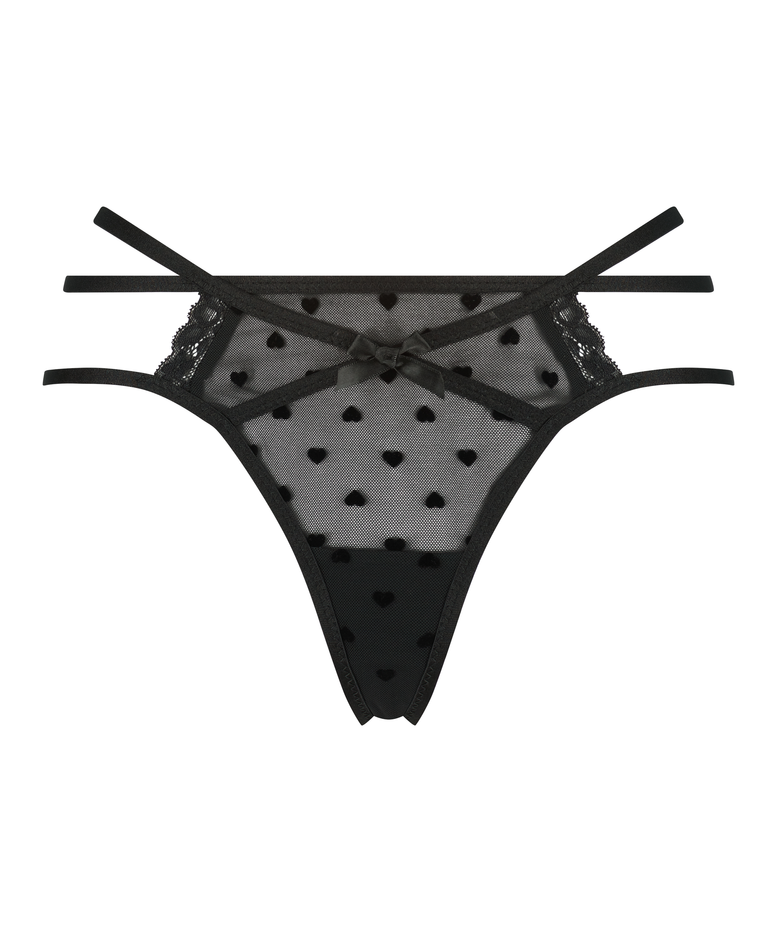Føl deg sexy i denne vakre g-strengen! Den har mye blonder, en søt liten sløyfe foran og fine strappy detaljer. Kombiner med tilhørende artikler og du har et flott sett!