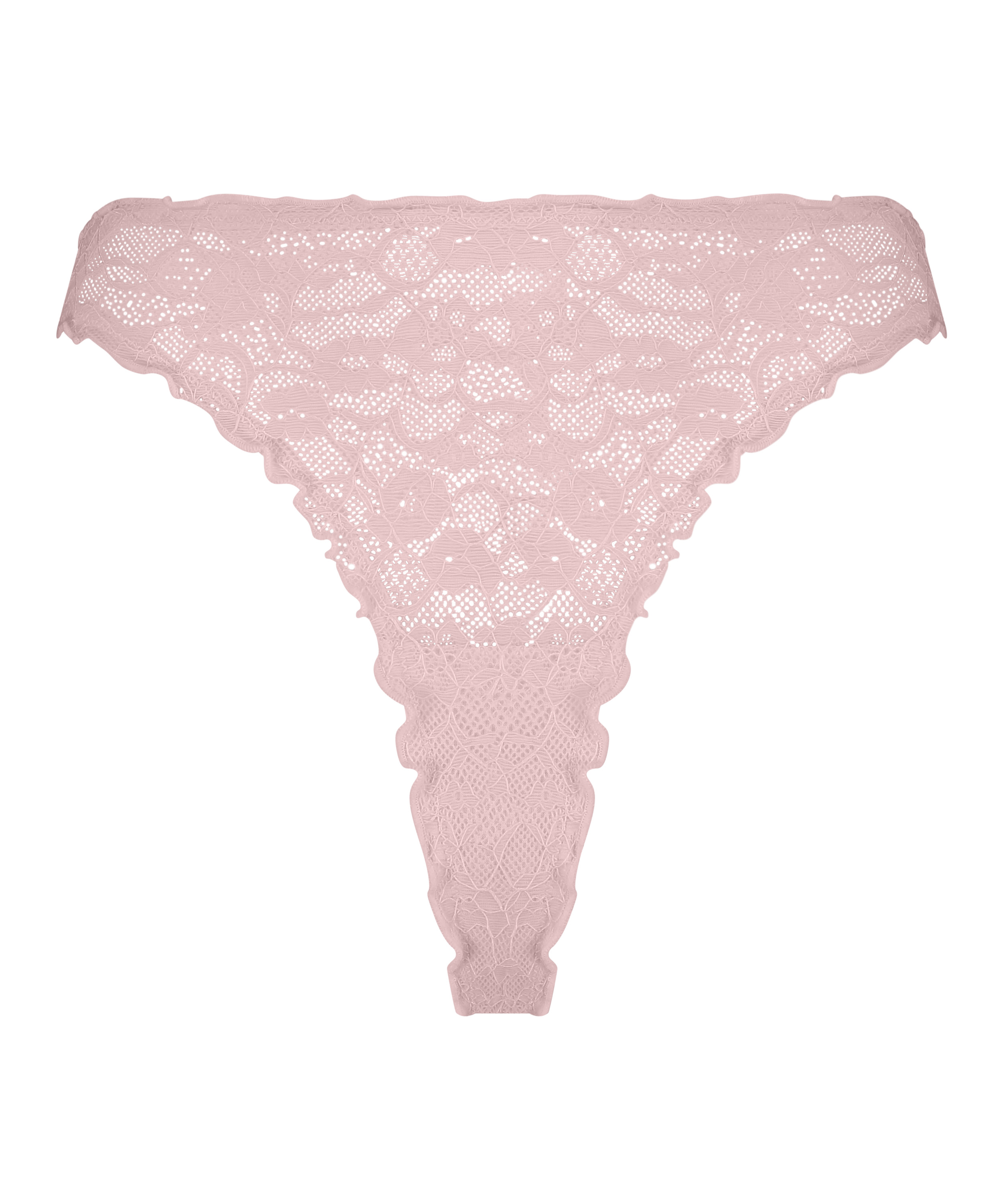 Føl deg søt i denne sexy thongen! Denne G-strengen har sexy, halvgjennomsiktig blomstrete blonder kombinert med søte volangkanter. Finn en matchende BH for å komplettere settet!