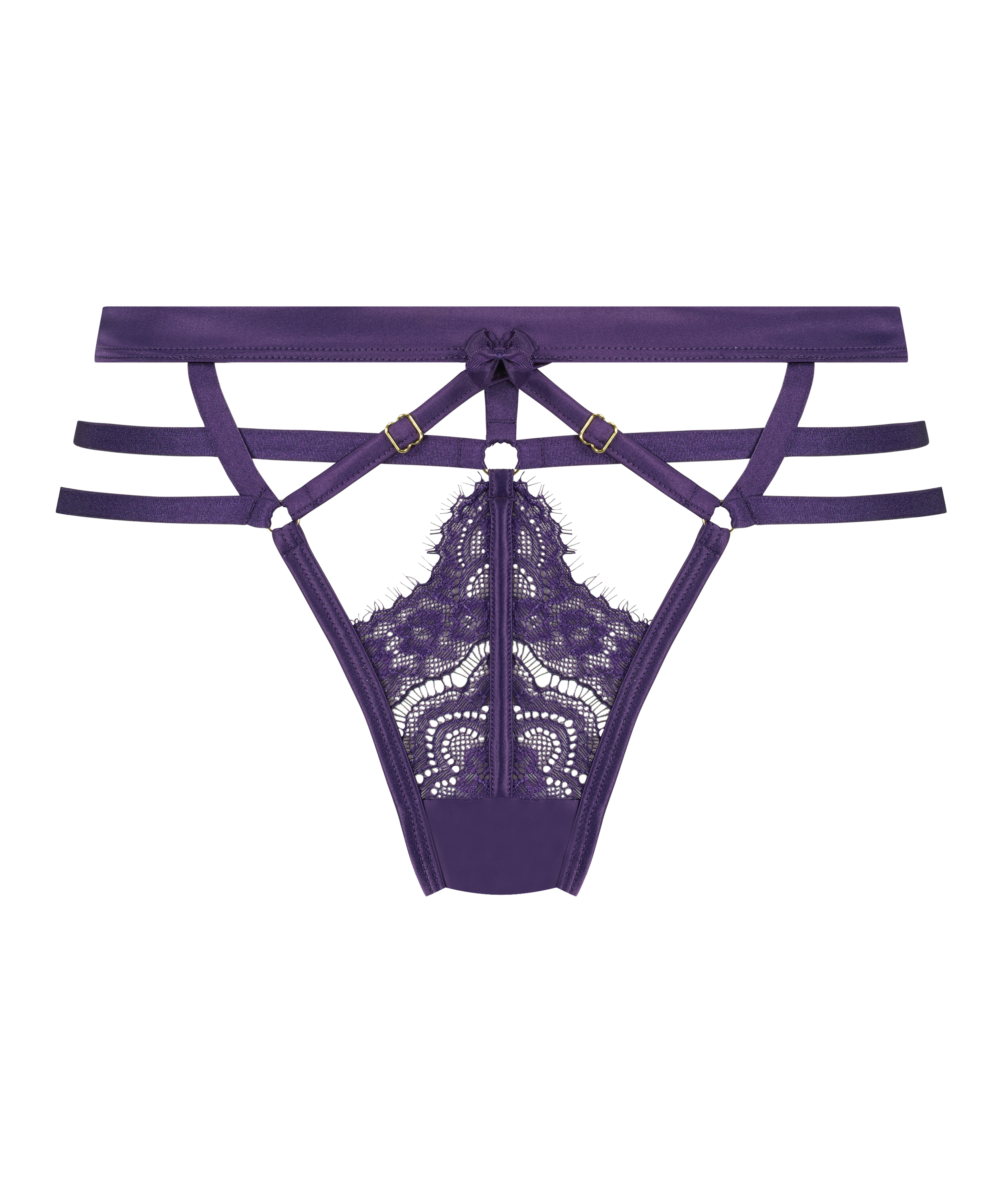 Skap en spennende look med denne g-strengen. Den har mange strappy detaljer og en søt, liten sløyfe foran. Kombiner med matchende artikler og du har et komplett sett. En del av Private-kolleksjonen.